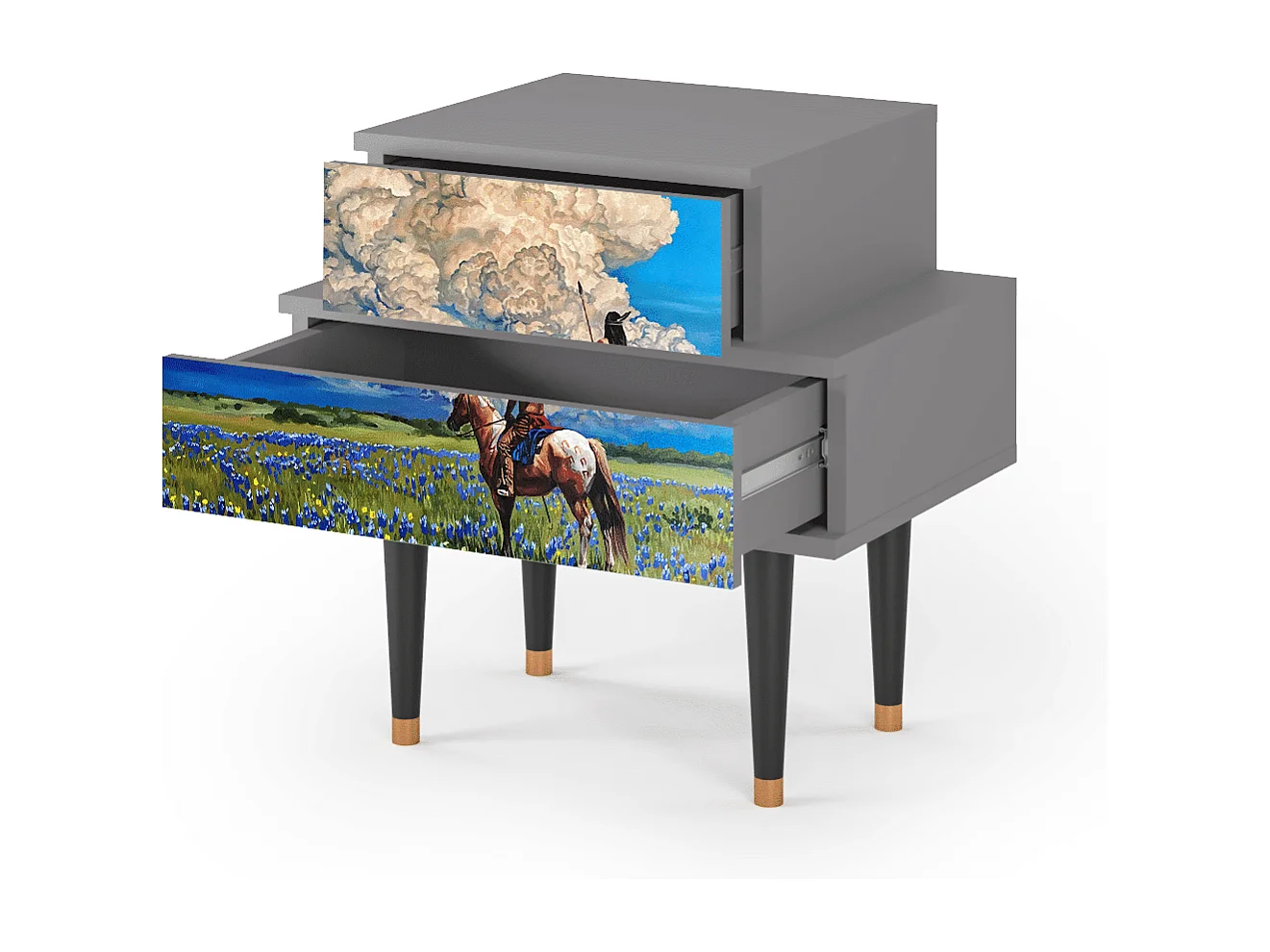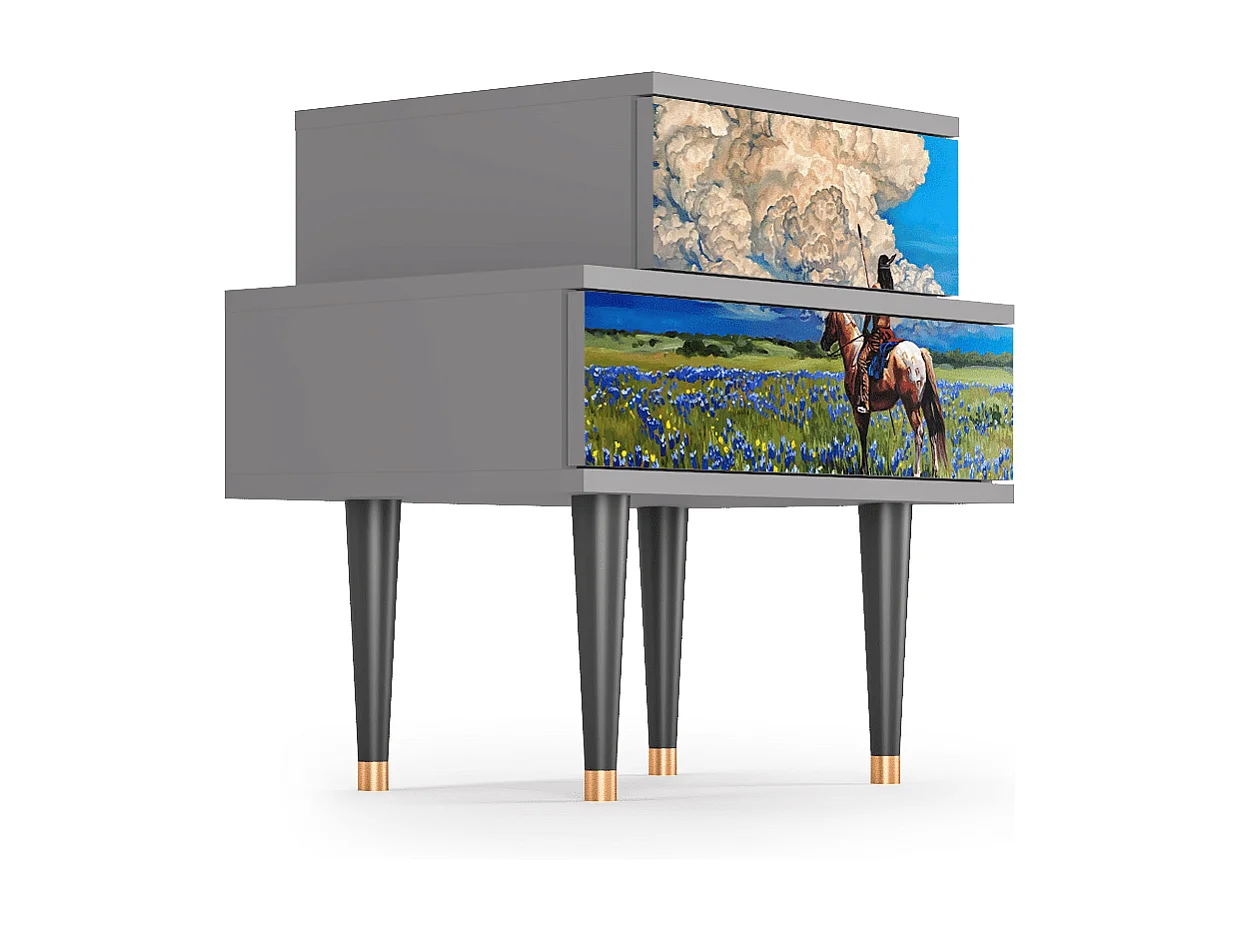 Stolik nocny - 58х58х41 cm - NS1 - Poppy field by van Gogh, Szary