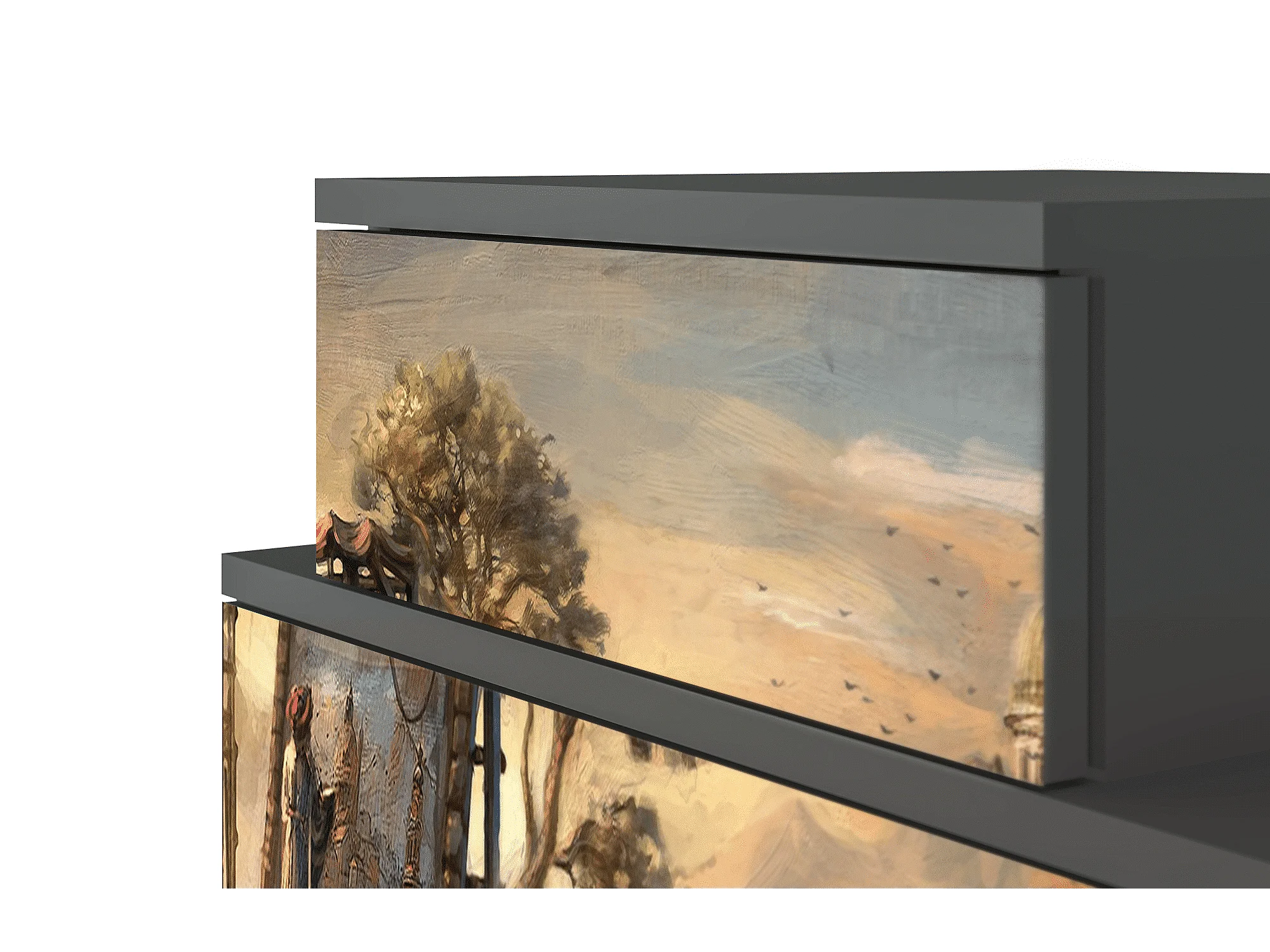 Stolik nocny - 58х58х41 cm - NS1 - Poppy field by van Gogh, Szary