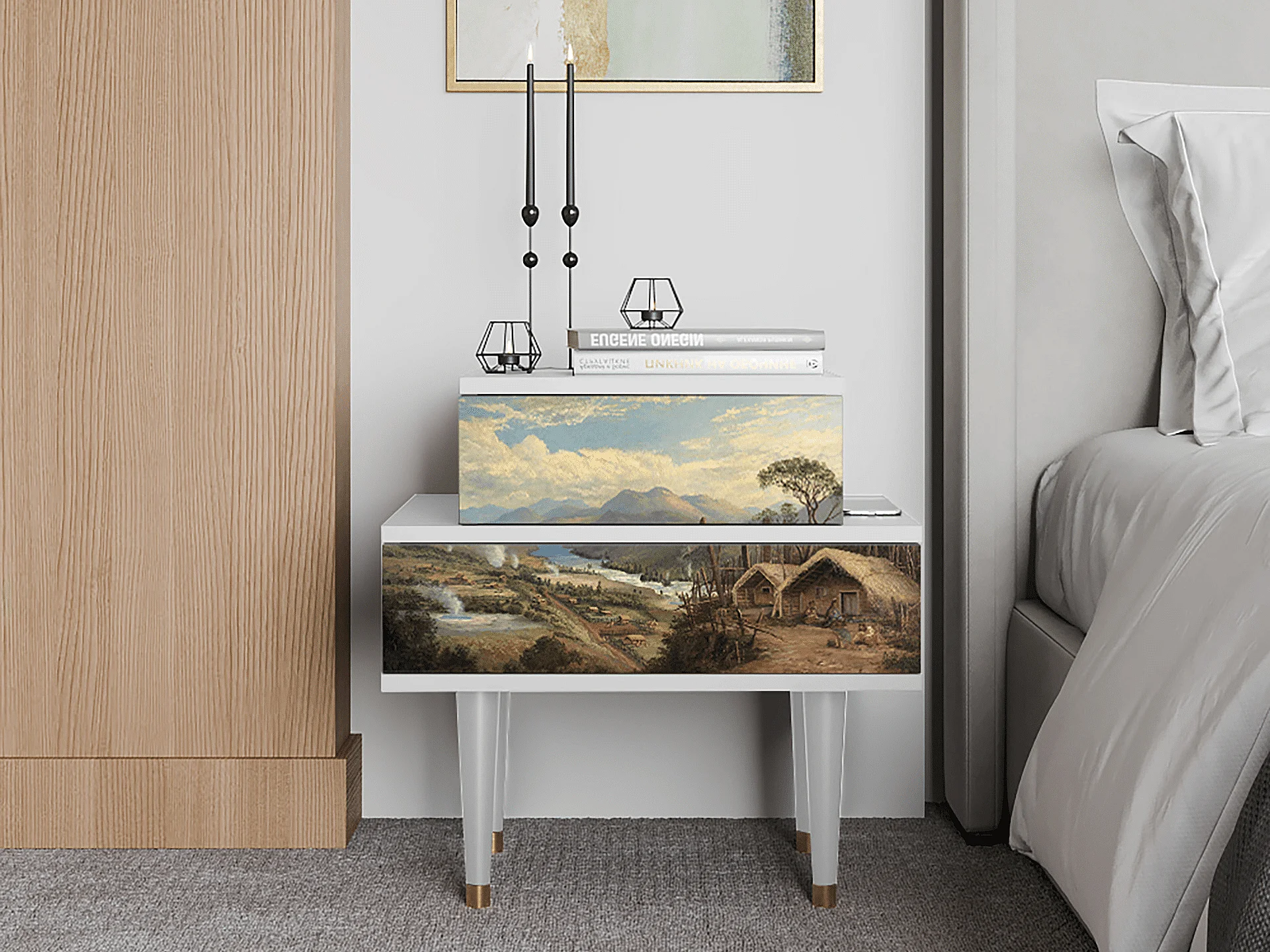 Stolik nocny - 58х58х41 cm - NS1 - View Across the Plains , Biały