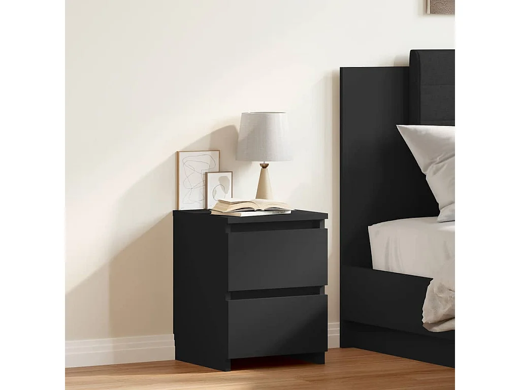 Stolik nocny Czarny 30x30x40 cm Drewno inżynieryjne 2 szuflady - Klasyczny i wszechstronny styl