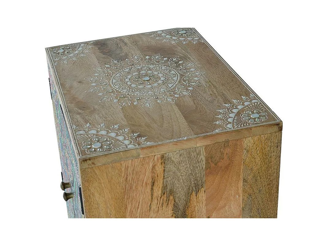 Wielokolorowy stolik nocny z drewna mango