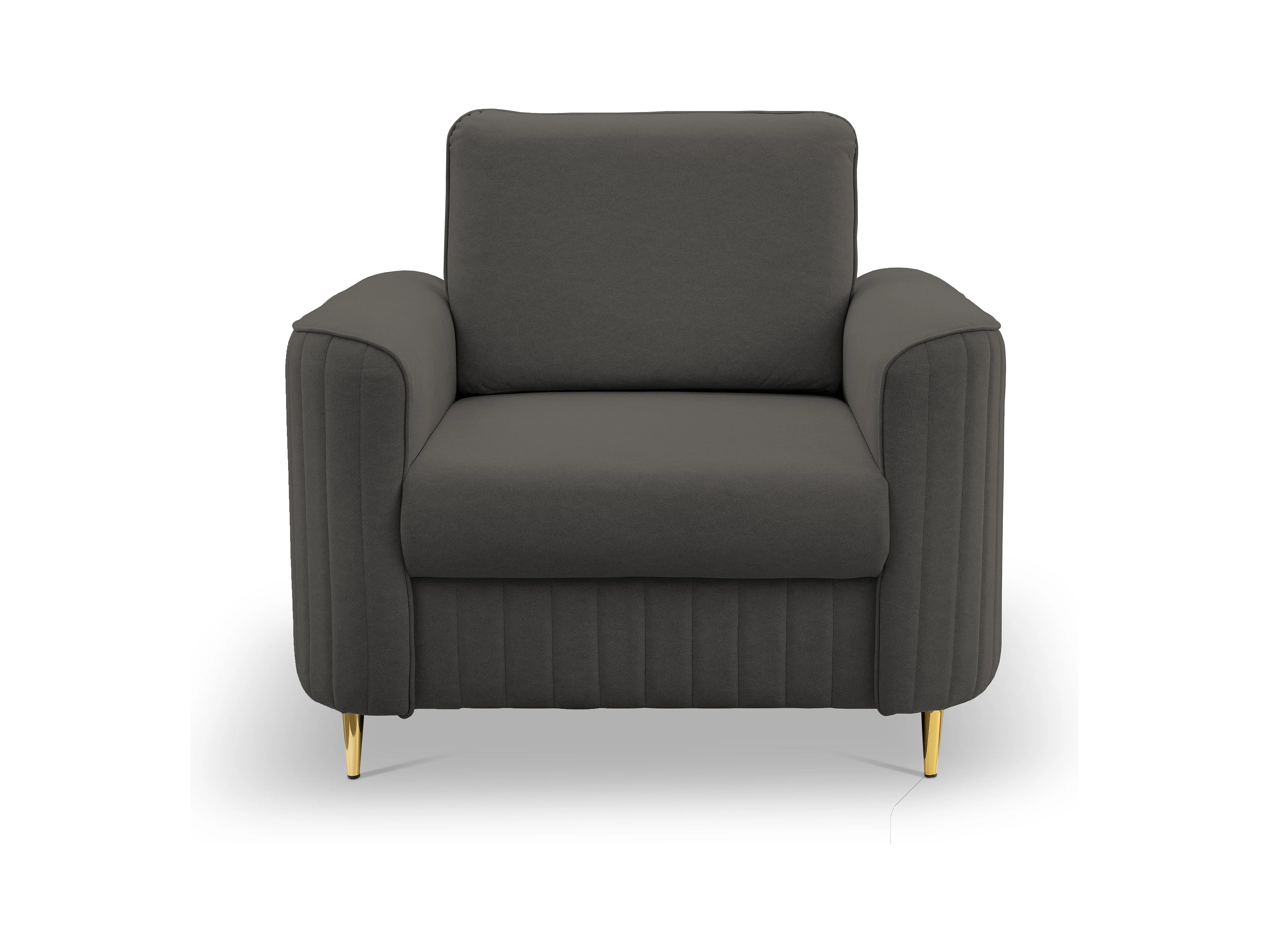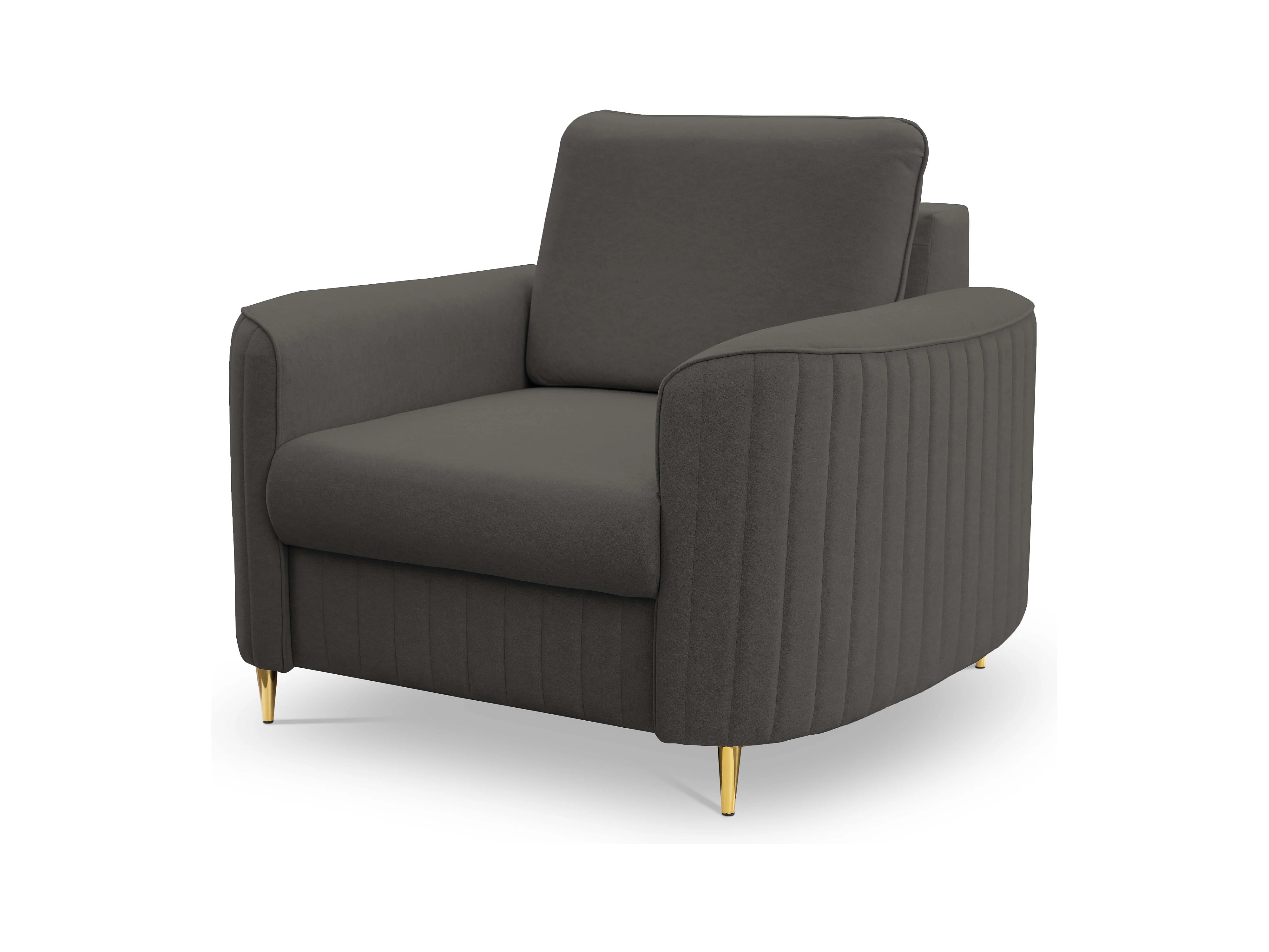 Fotel ciemnoszary - Fotel z oparciem i podłokietnikami - nogi i poduszki drewniane - aksamitny miś