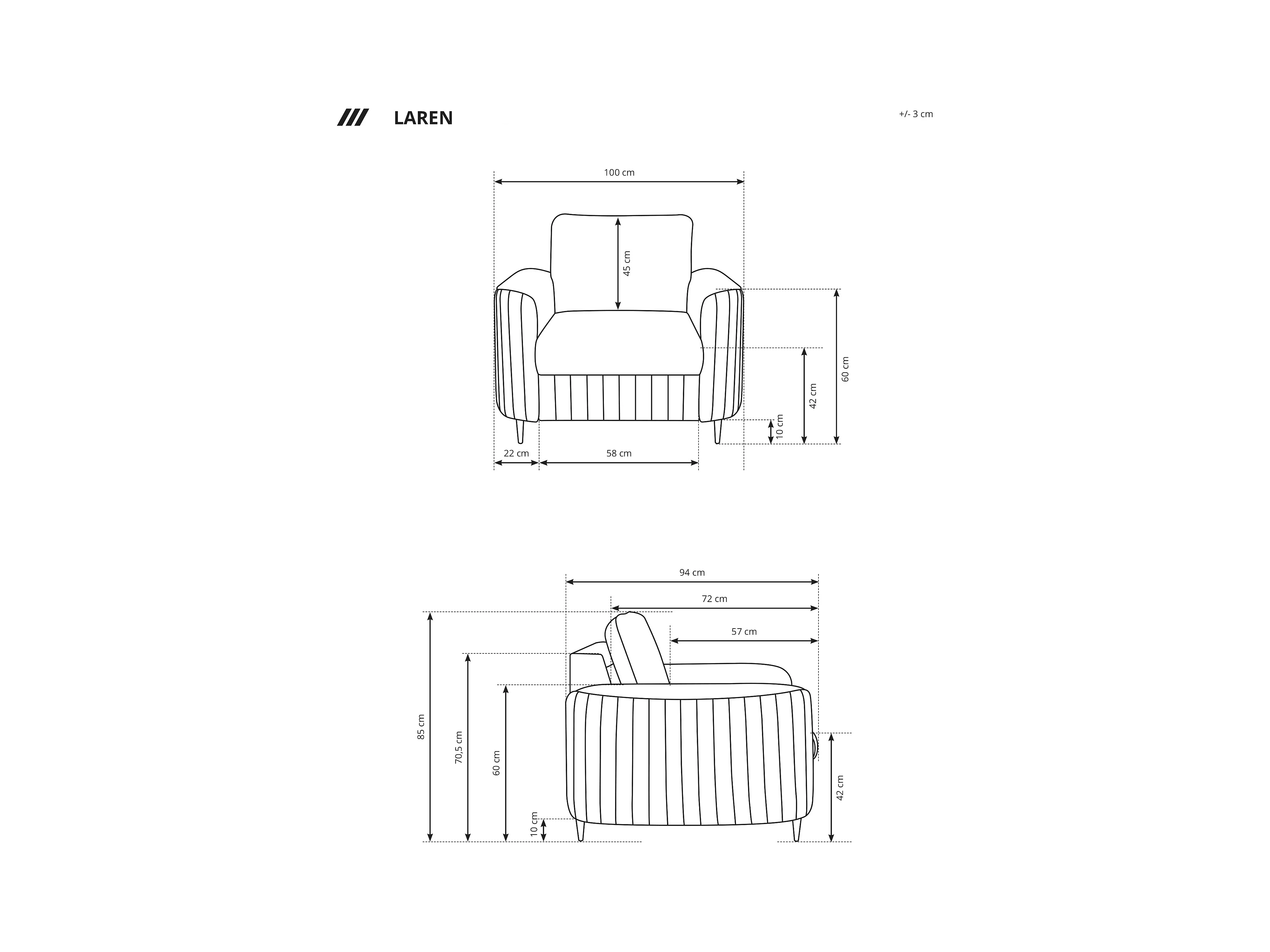 Stylowy Fotel LAREN Nowoczesny z Metalowymi Nogami W pełni Tapicerowane Oparcie Pianka PUR dla Najwyższego Komfortu 100x85x94cm CIEMNOSZARY