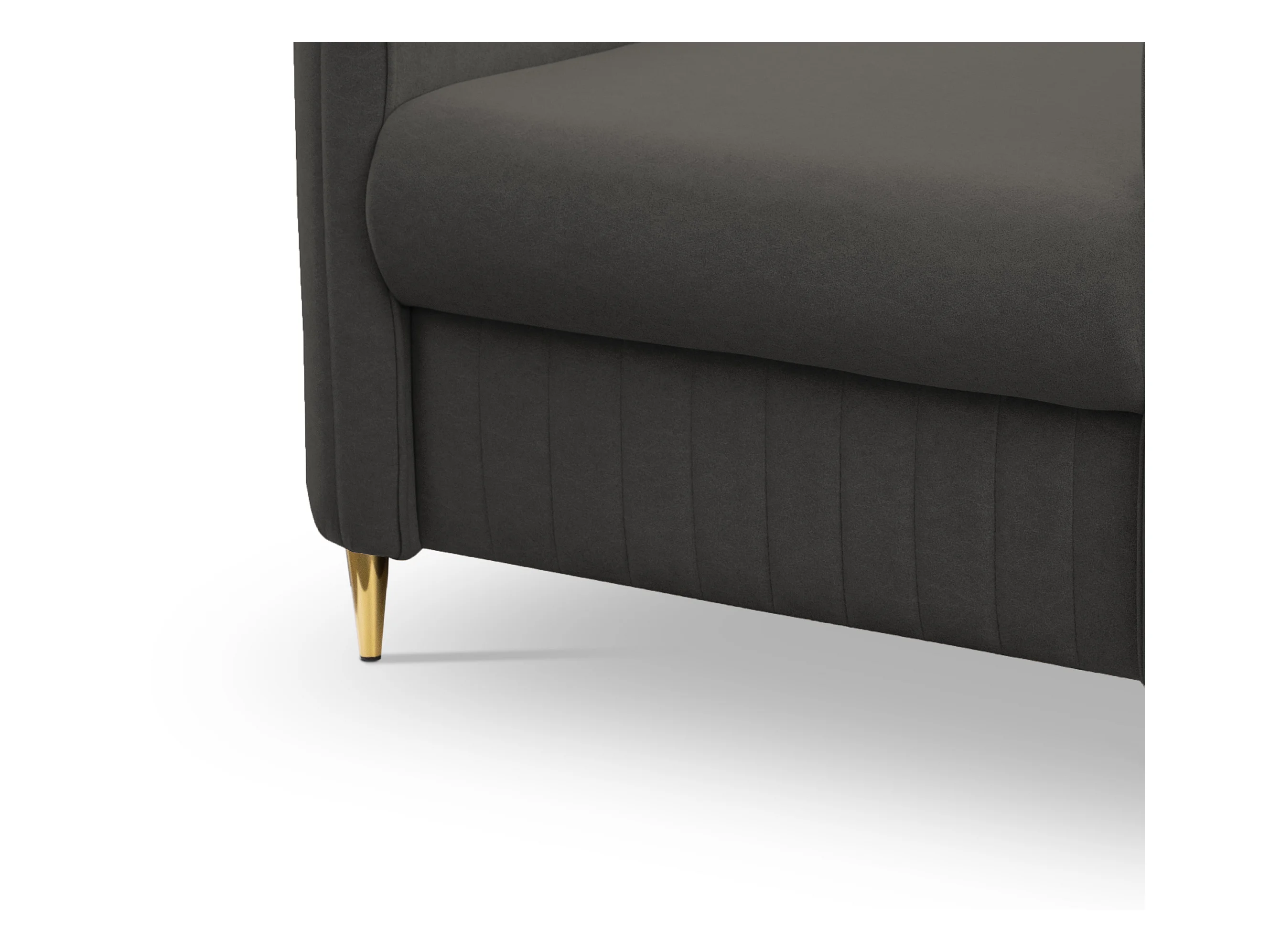 Szary fotel z tkaniny z efektem aksamitu, drewniane nogi i podłokietniki - VIRNA