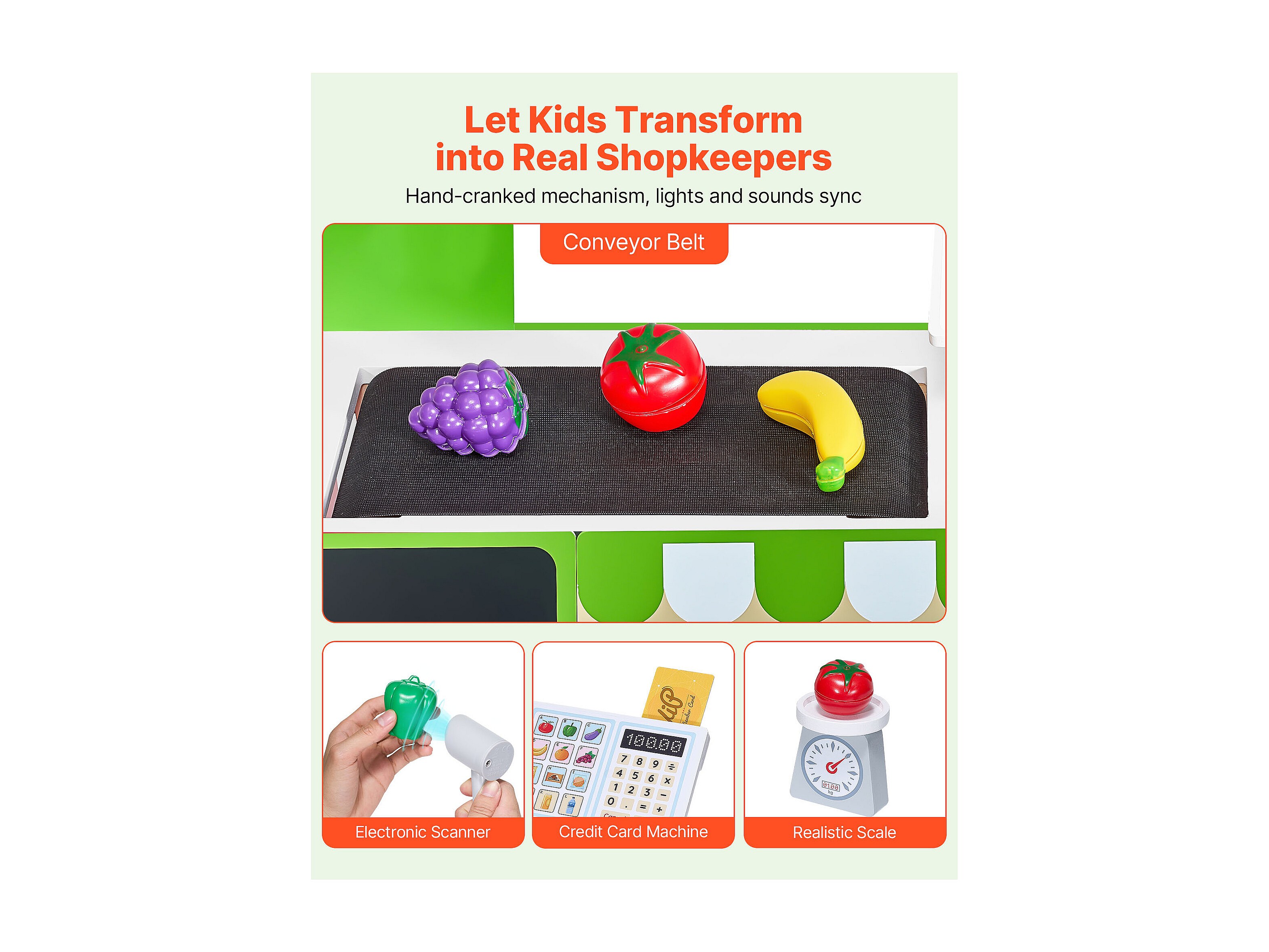 Supermarket dla Dzieci SucceBuy, 81,5 x 30,7 x 85 cm, Sklepik dla Dzieci, Zestaw Spożywczy, Sklep z MDF, dla Chłopców i Dziewczynek w Wieku od 3 Lat
