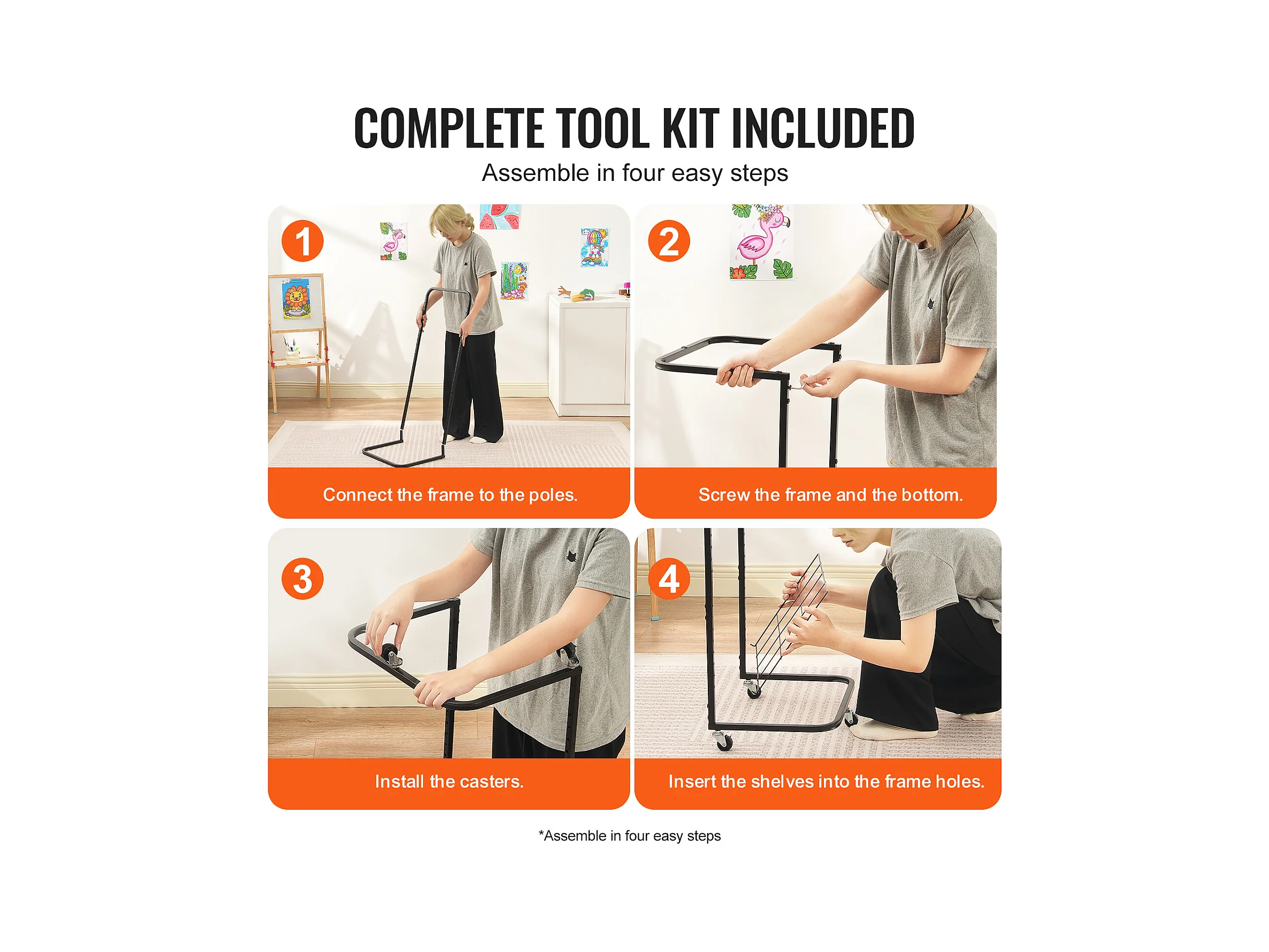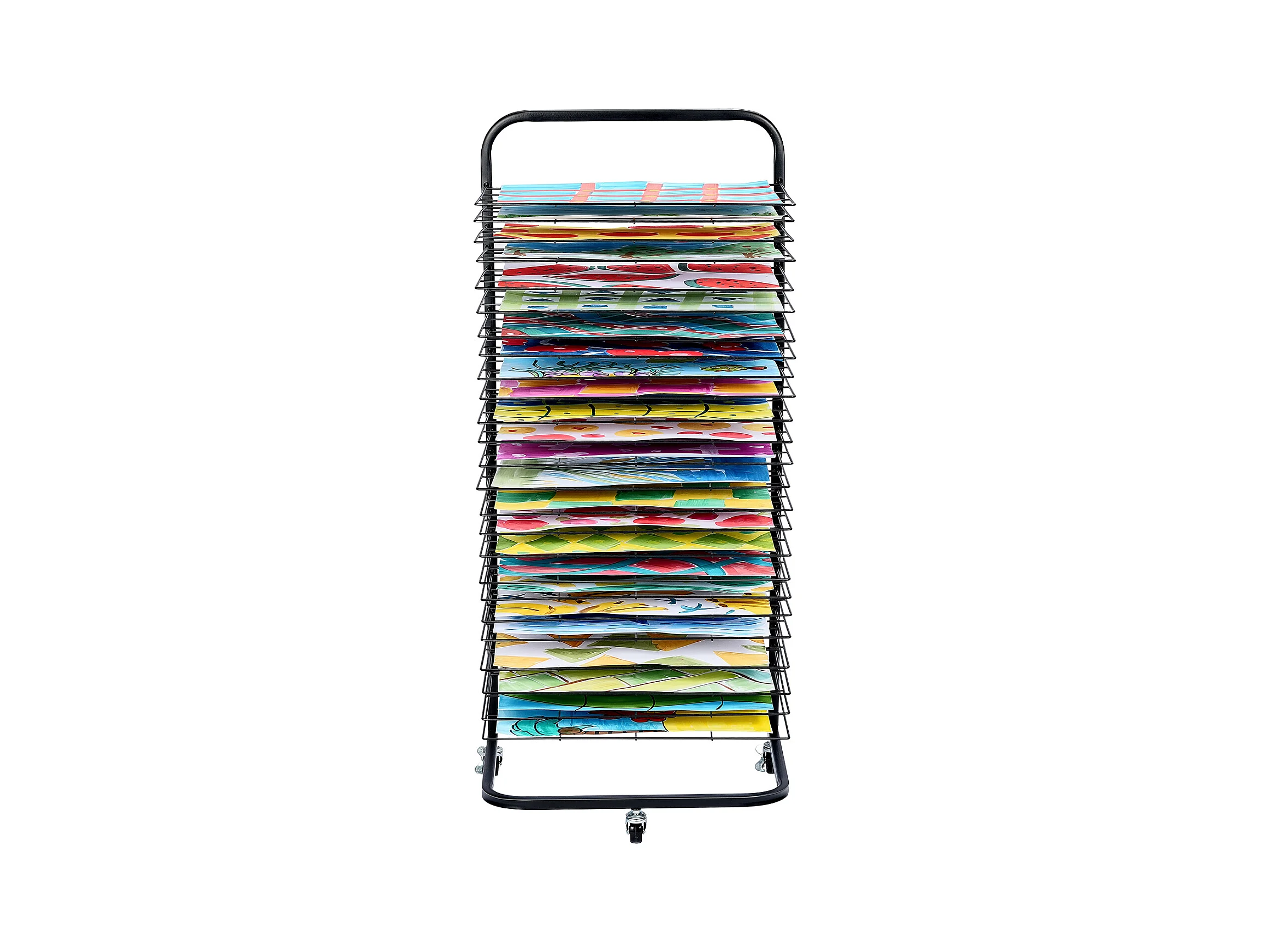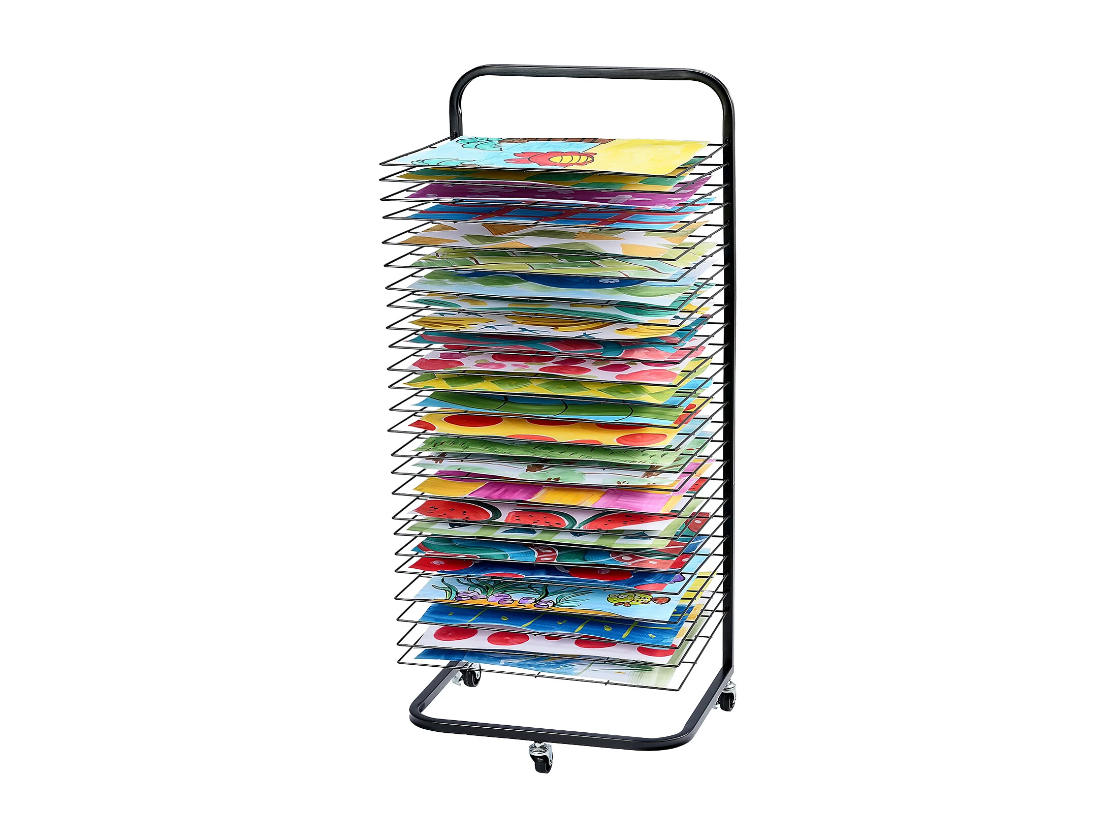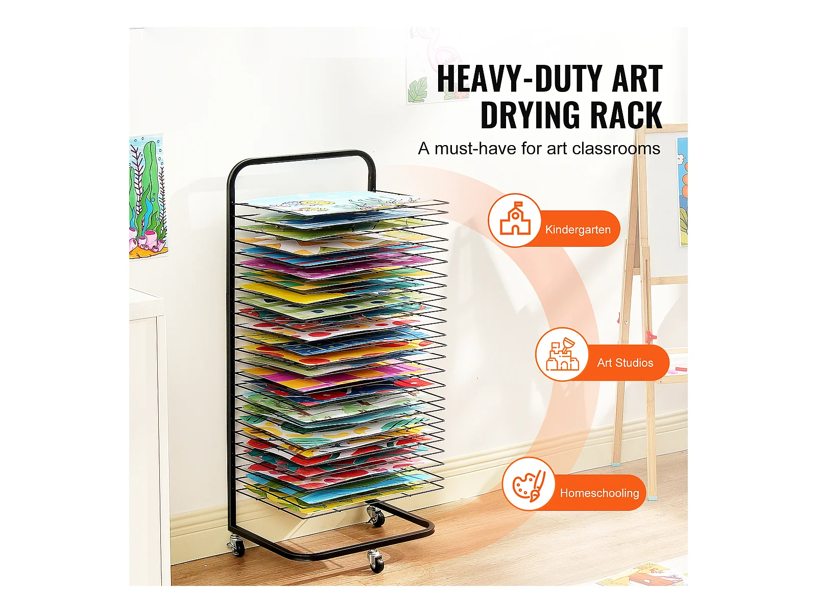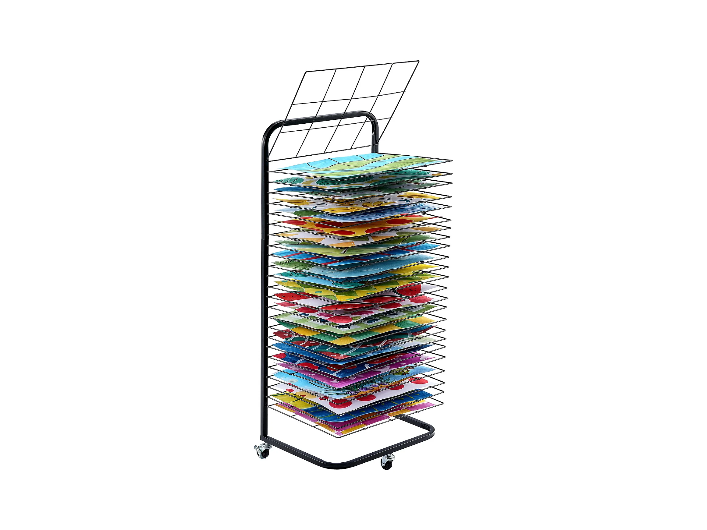 Suszarka do Farby SucceBuy 25 Półek z Kółkami, Czarny, Wyposażony w 3 Obrotowe Kółka, dwa z Hamulcami, Utrzymuje do 3,75 kg