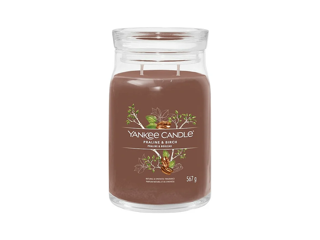 Świeca zapachowa w dużym słoju, Praline & Birch, brązowy 567 gr, Signature