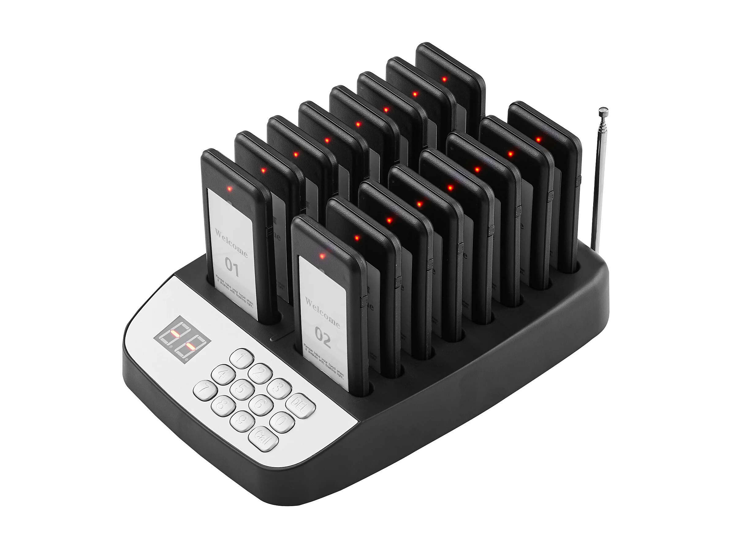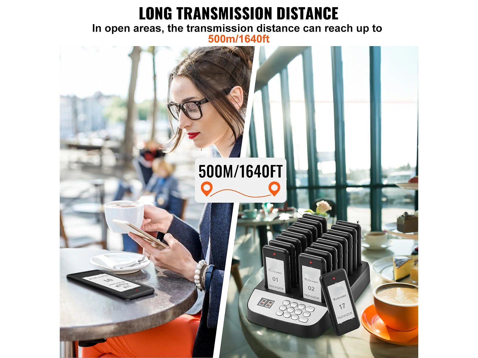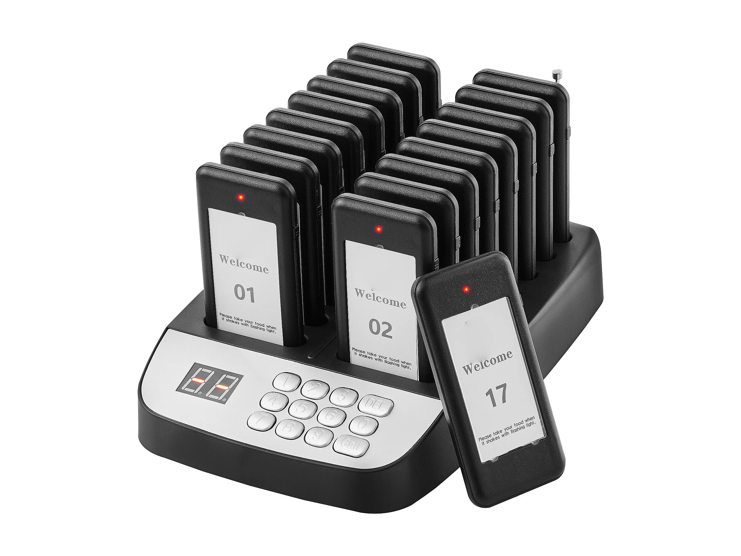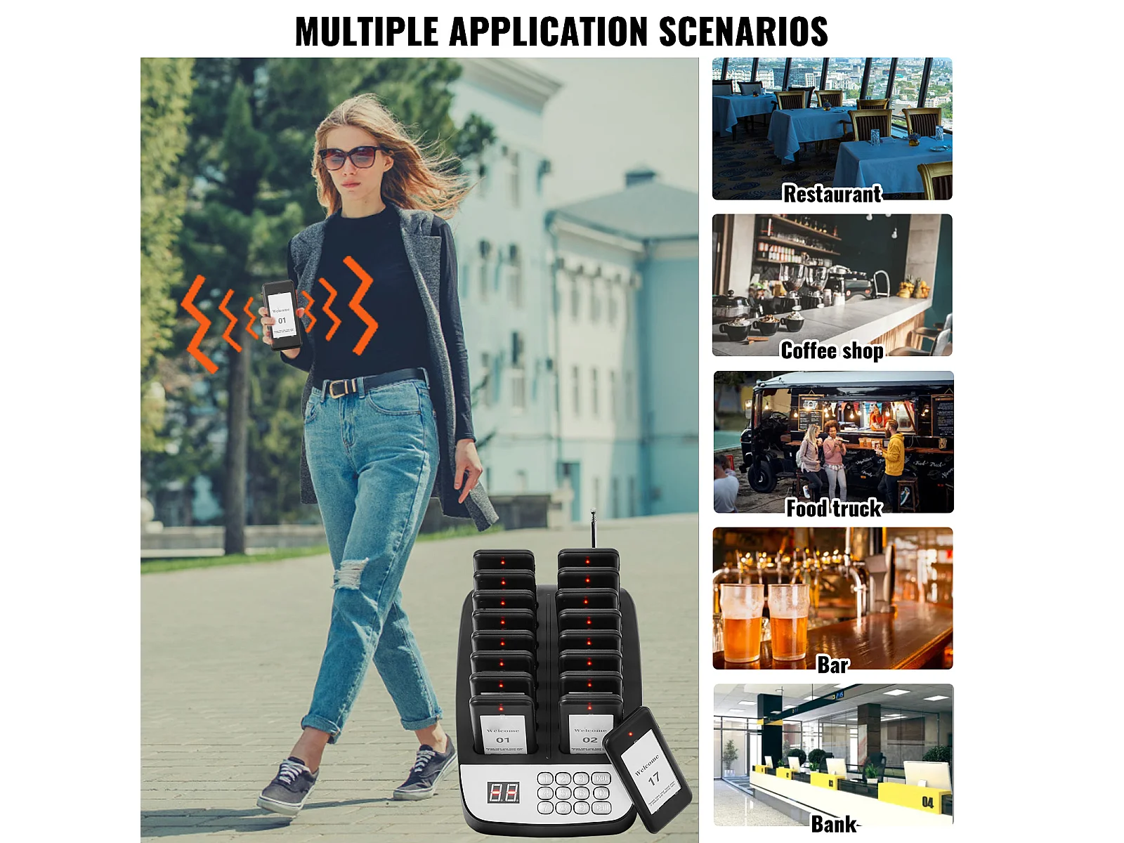 System Pagerów SucceBuy Restauracyjnych, Bezprzewodowe Pagery Restauracyjne o Zasięgu 500 M, z Wibracjami i Miganiem, 16 Brzęczyków