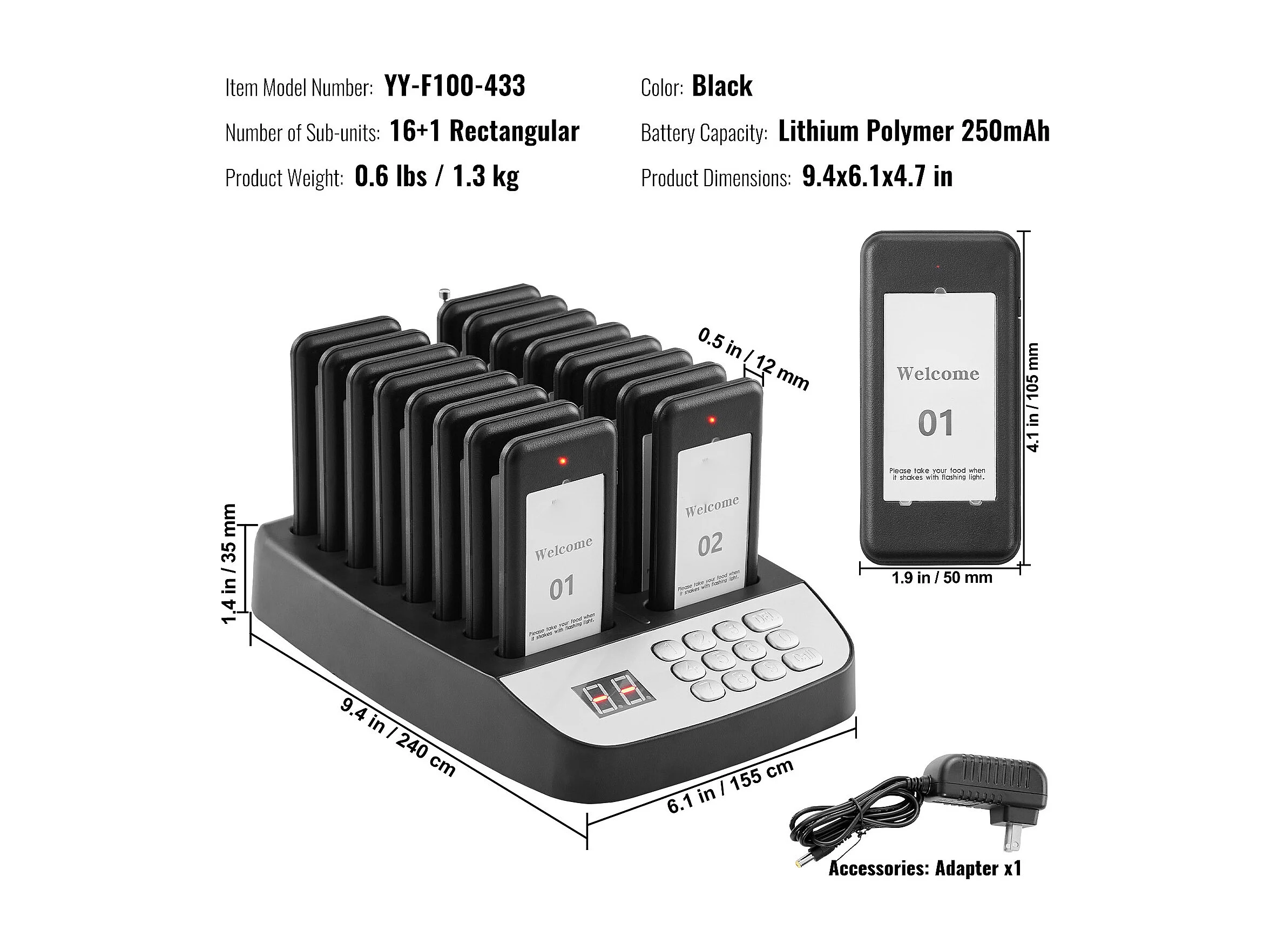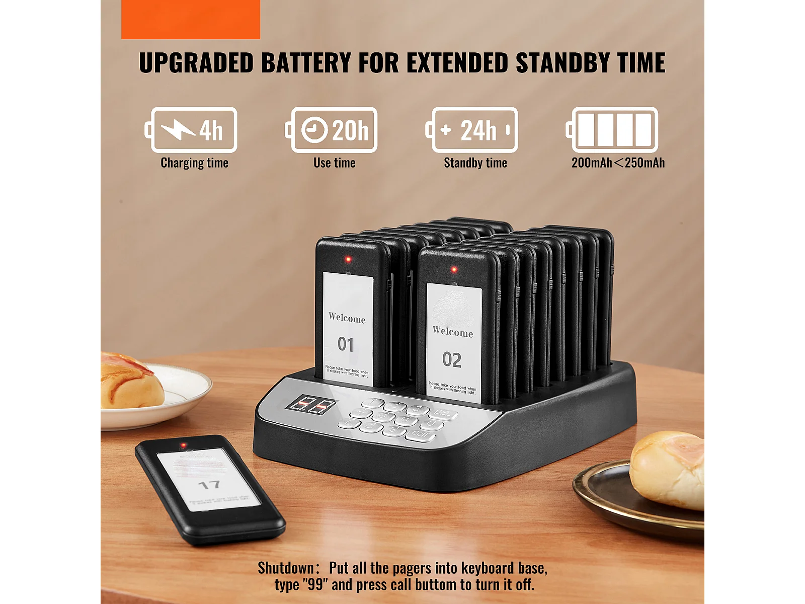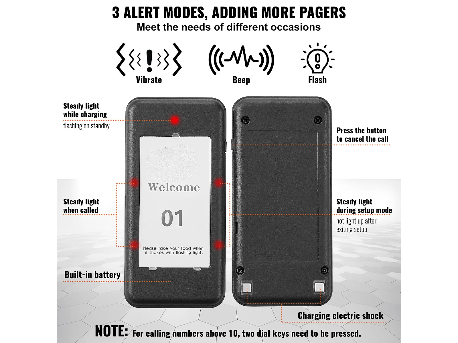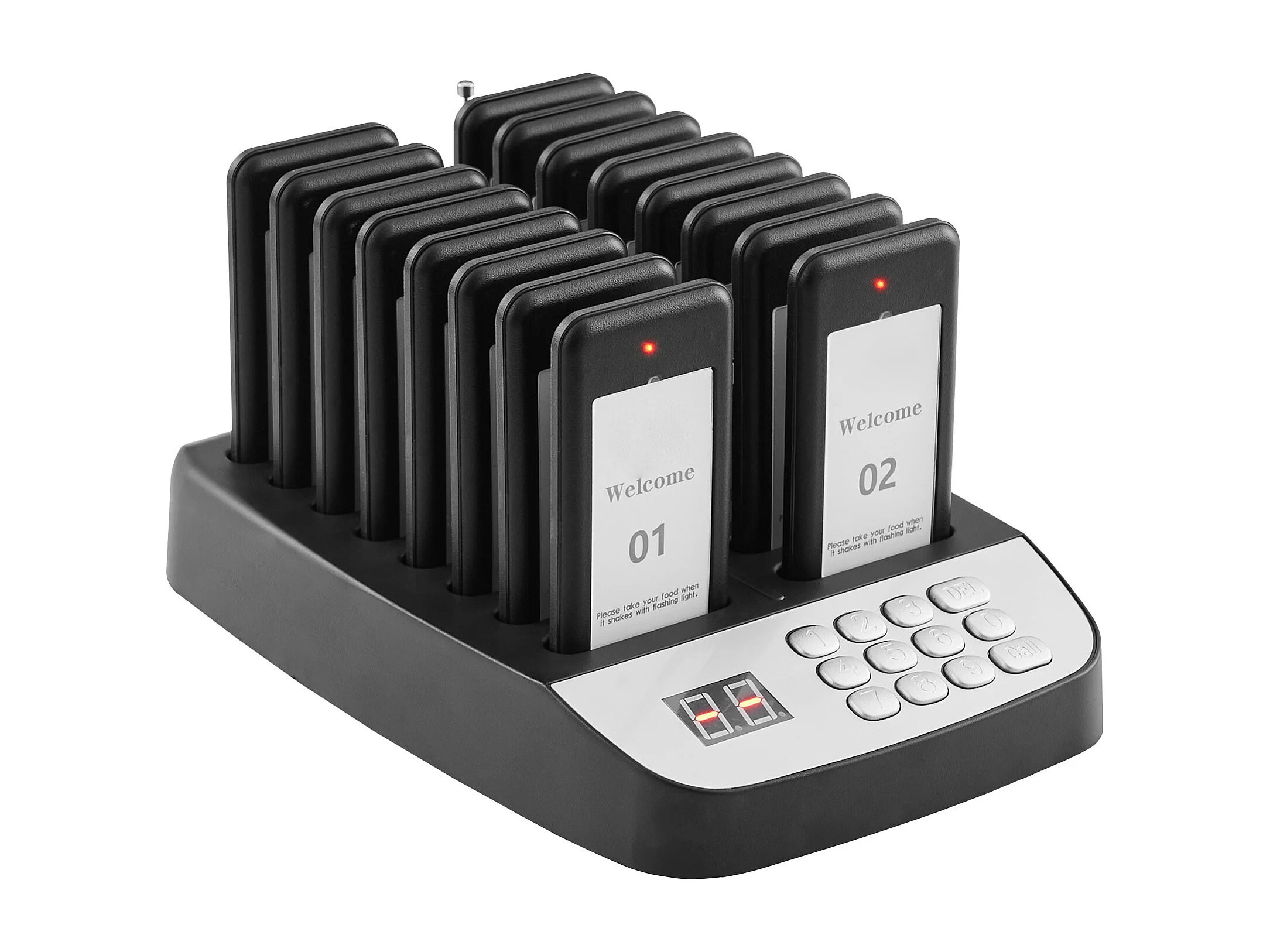 System Pagerów SucceBuy Restauracyjnych, Bezprzewodowe Pagery Restauracyjne o Zasięgu 500 M, z Wibracjami i Miganiem, 16 Brzęczyków