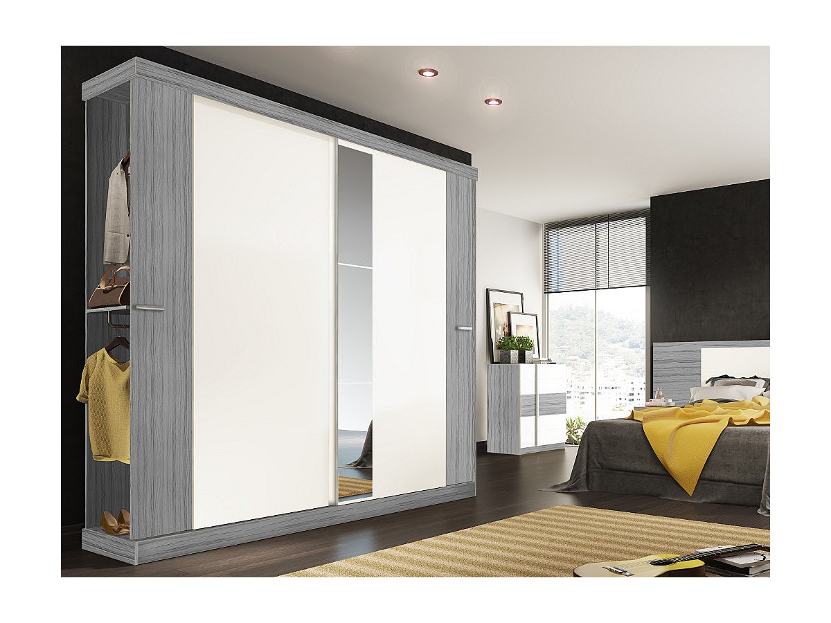 Szafa ADALRIK - Podwójne drzwi przesuwne - dł.231 cm - Kolor: szary i biały