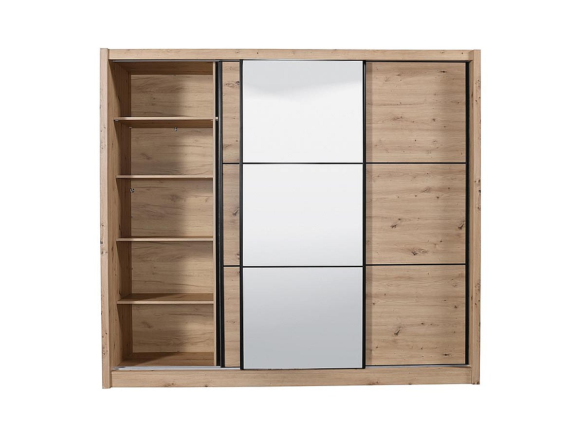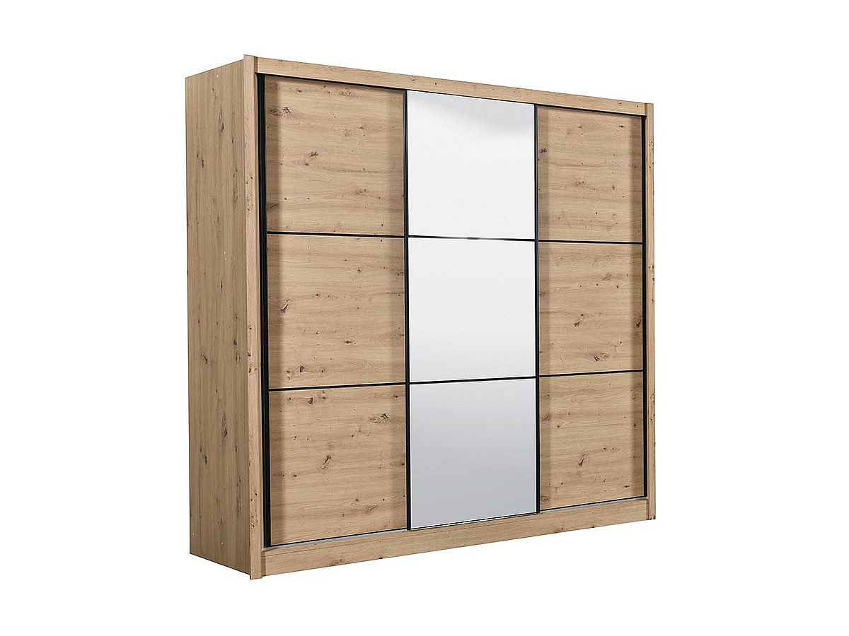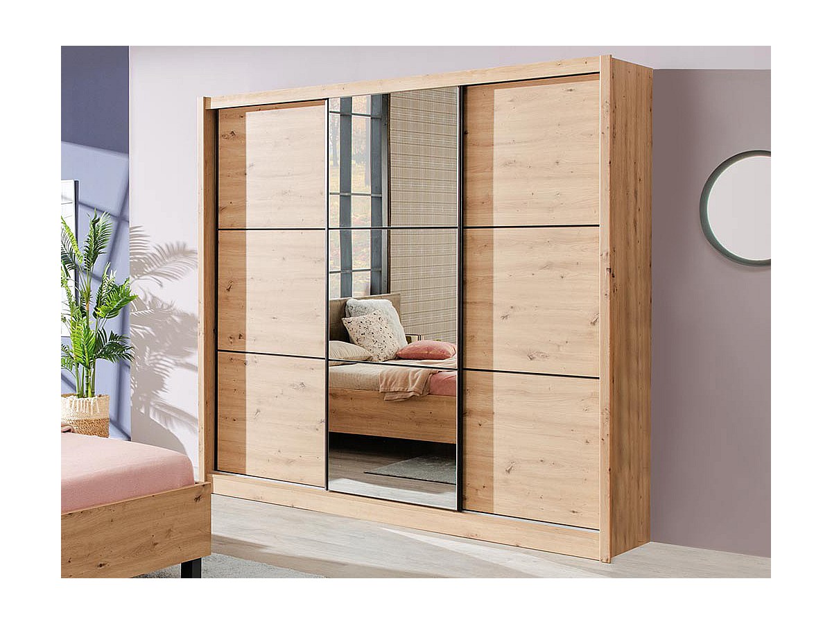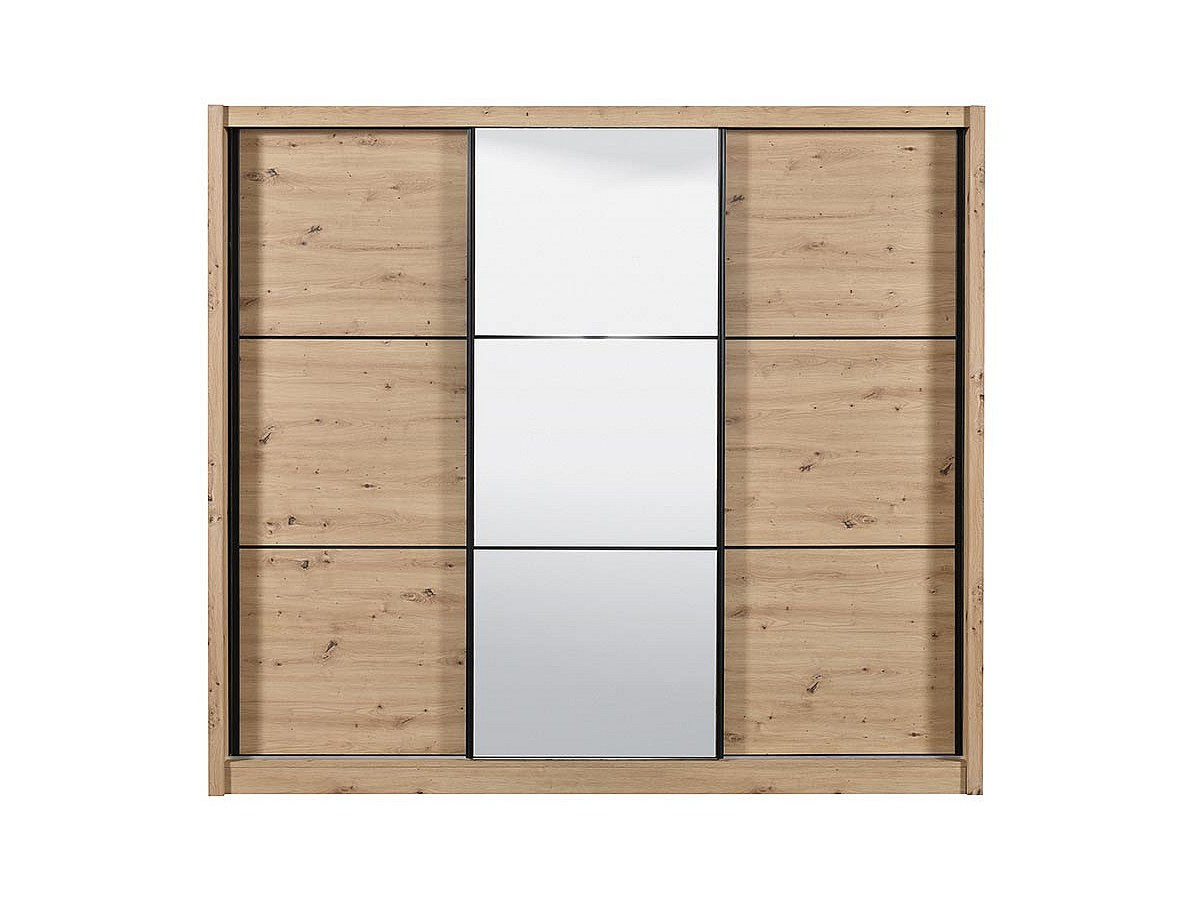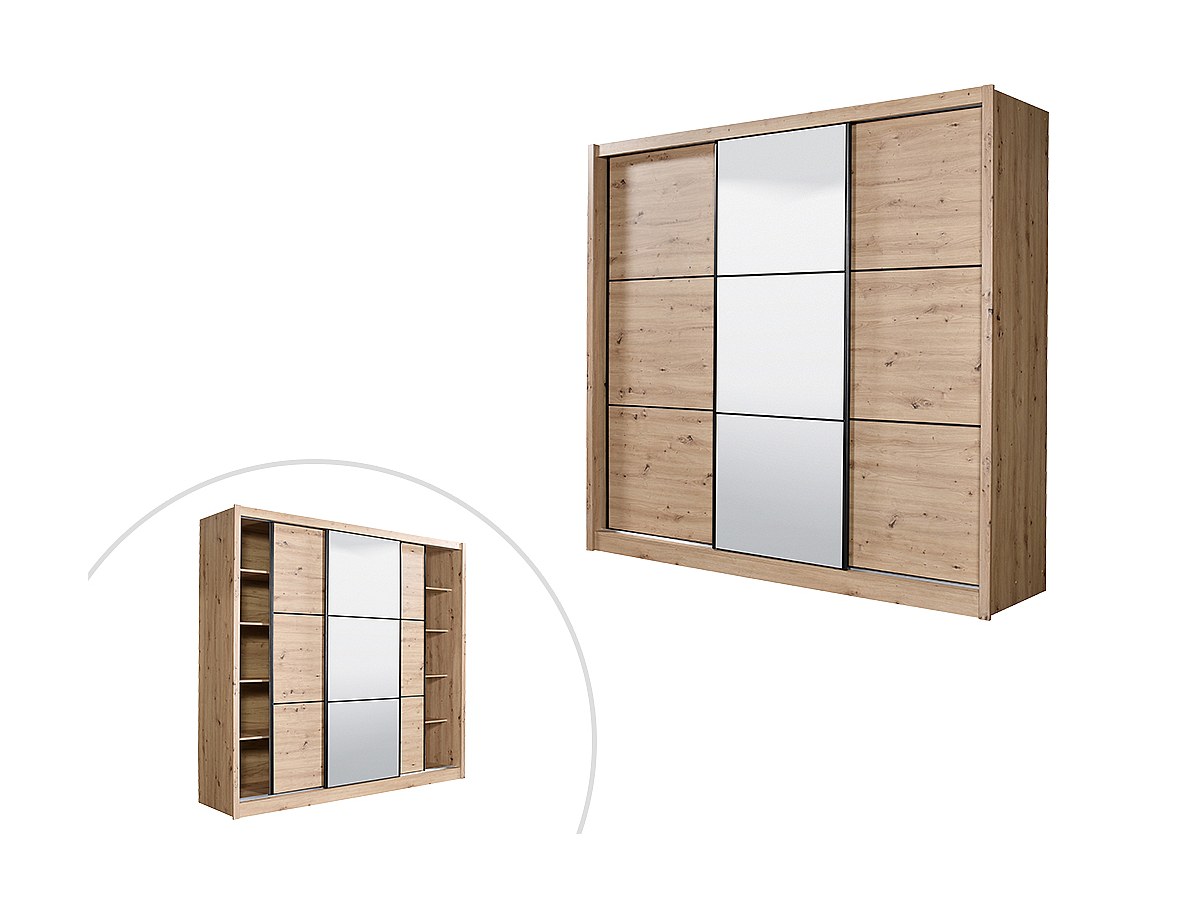 Szafa CASABONA – 3 skrzydła drzwi przesuwnych – lustro – dł. 242 cm – kolor: dębowy
