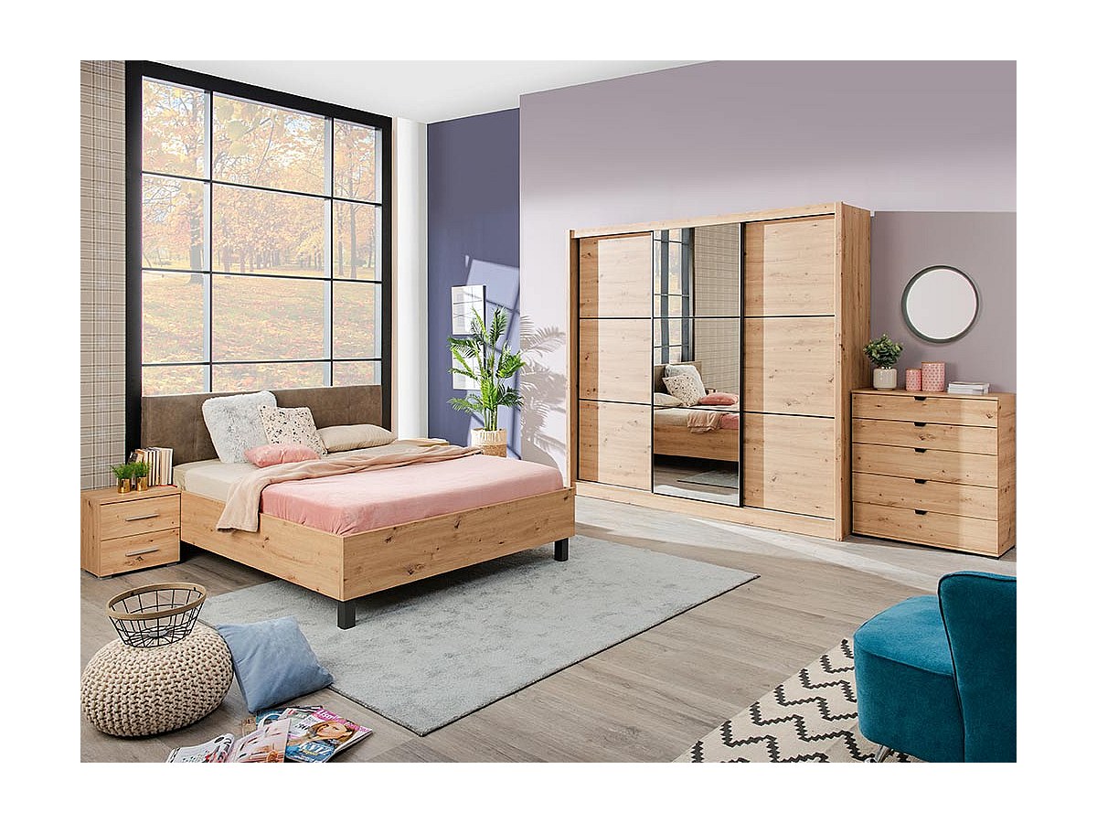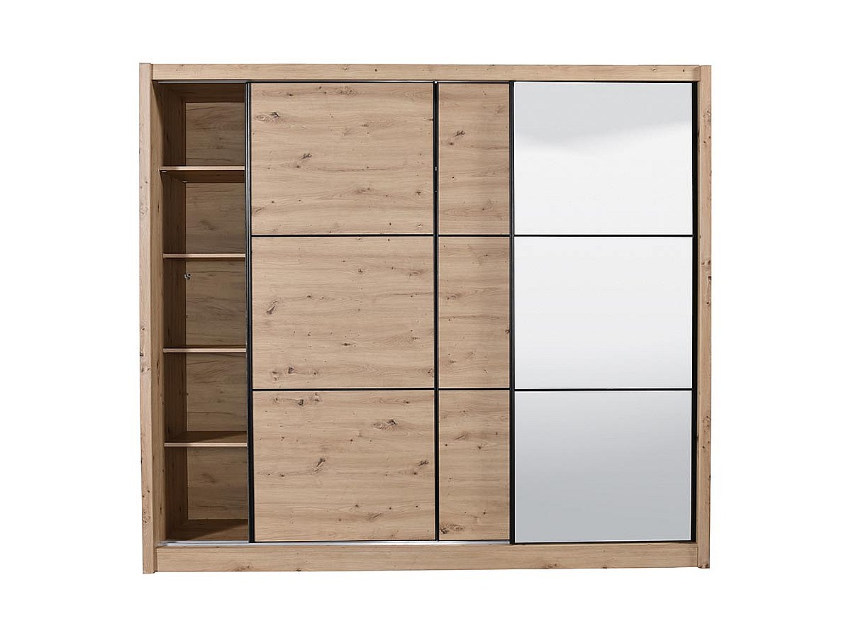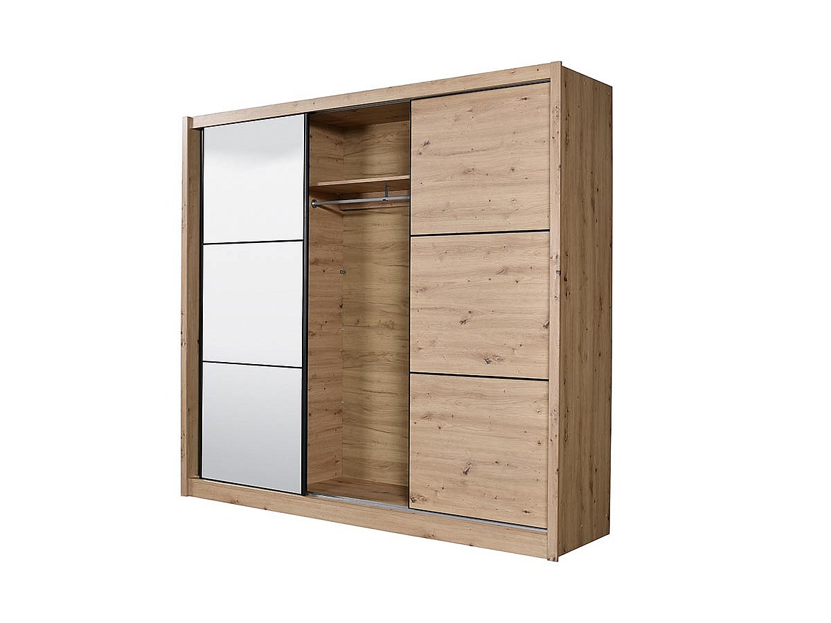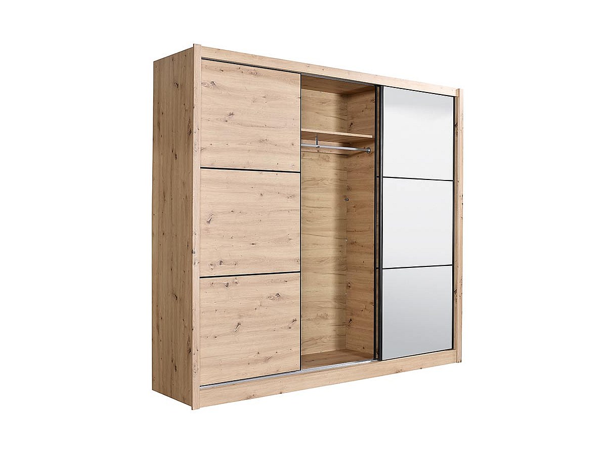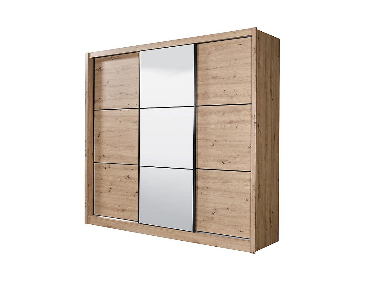 Szafa CASABONA – 3 skrzydła drzwi przesuwnych – lustro – dł. 242 cm – kolor: dębowy