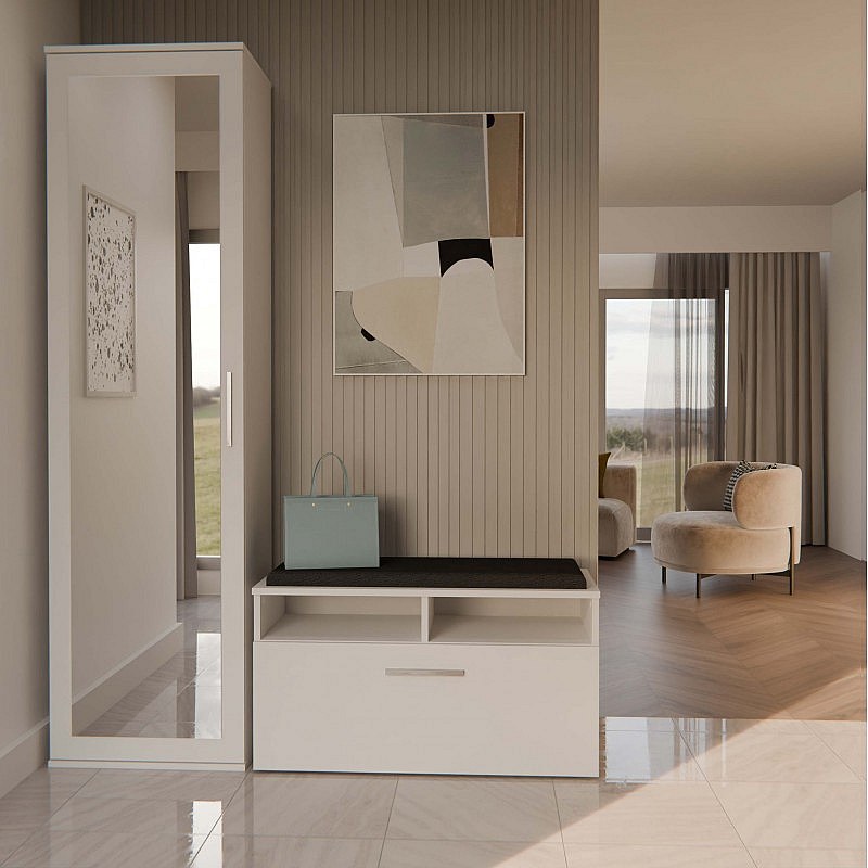 Szafa Duo | Biała | Nowoczesna Szafa z lustrem | 50x35x180 cm | Przedpokój