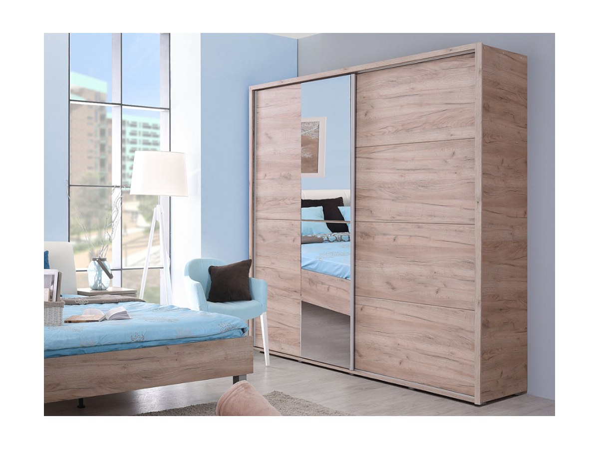 Szafa GALINA – 2 pary drzwi przesuwnych – Z lustrem – Dł. 184 cm – Dąb