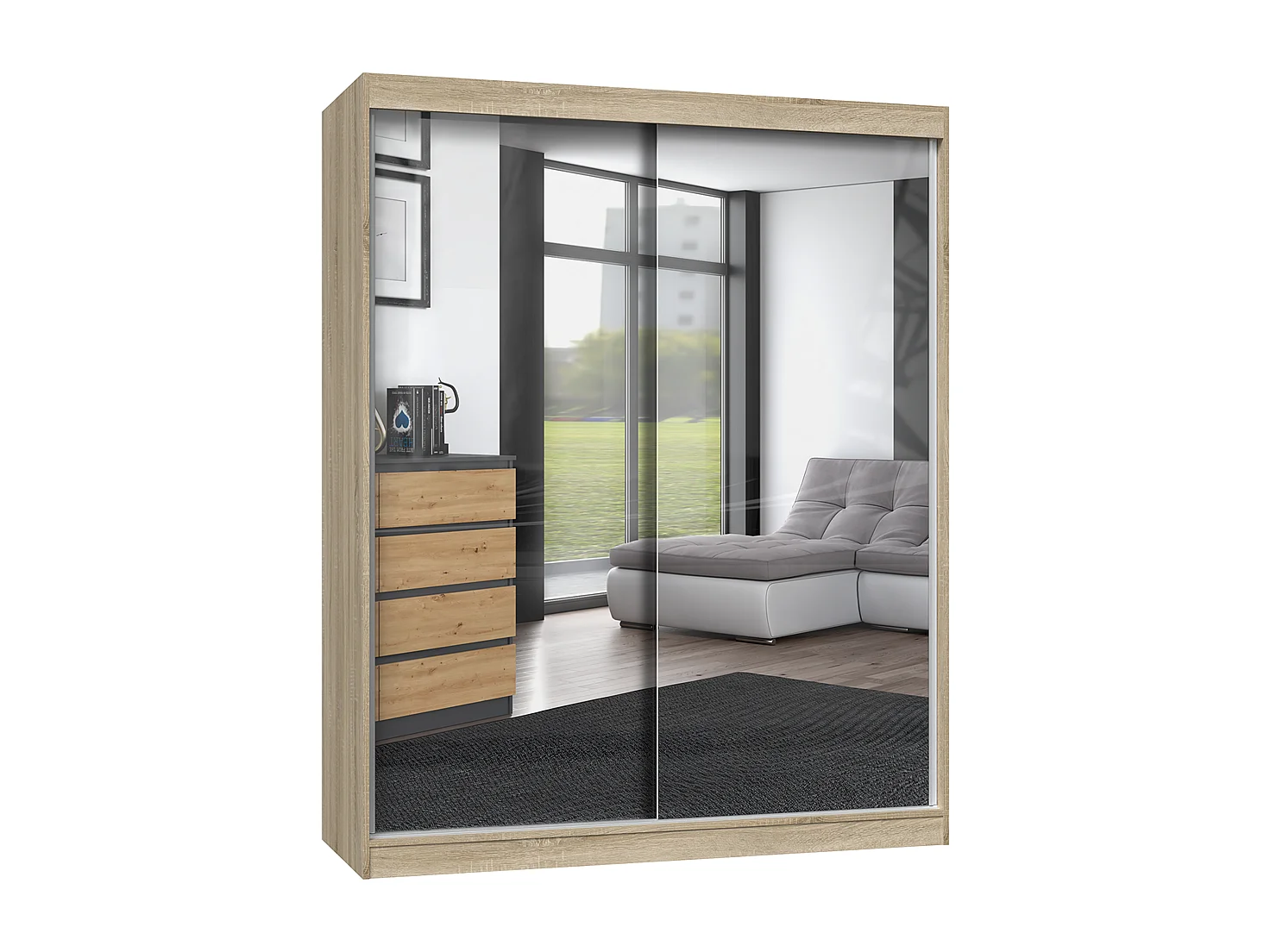 Szafa Iga 160/A | Dąb Sonoma | 160x61x200 cm | Nowoczesna Szafa Przesuwna z Lustrami