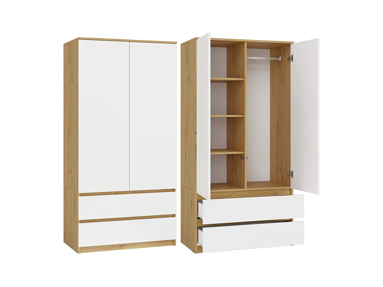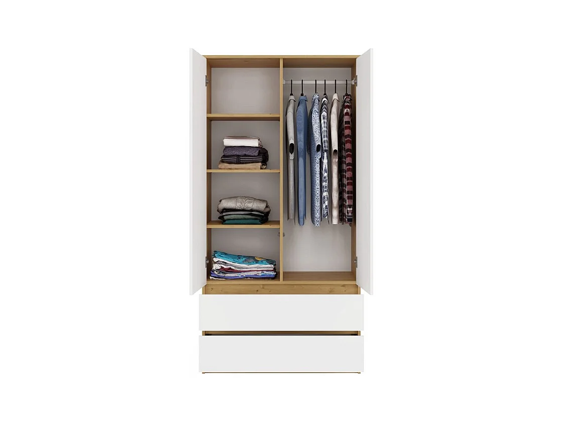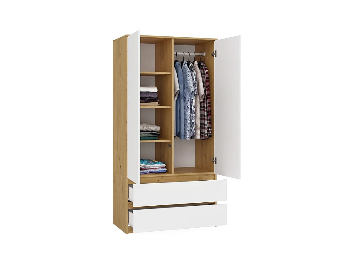 Szafa Malwa SS-90 | 90x50x180 cm | Dąb Artisan/Biały | 2 Drzwi, 2 Szuflady