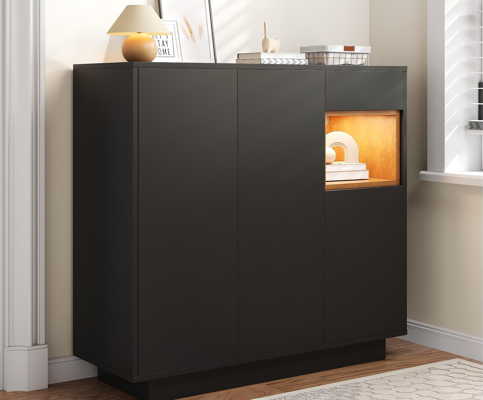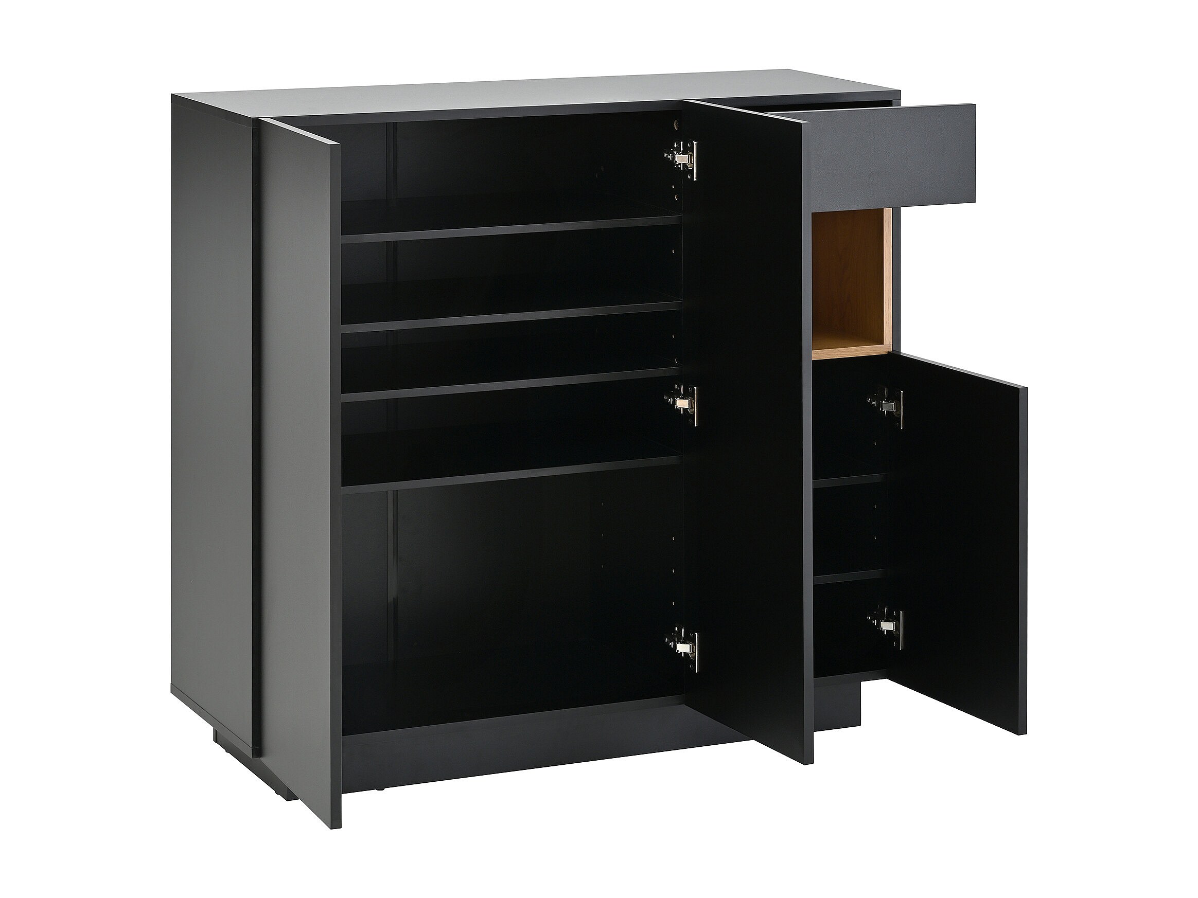 Szafa na buty 105x39.5x100.5 cm - 1 szuflada i 3 drzwi - z oświetleniem LED - z regulowanymi półkami - Czarny i naturalny