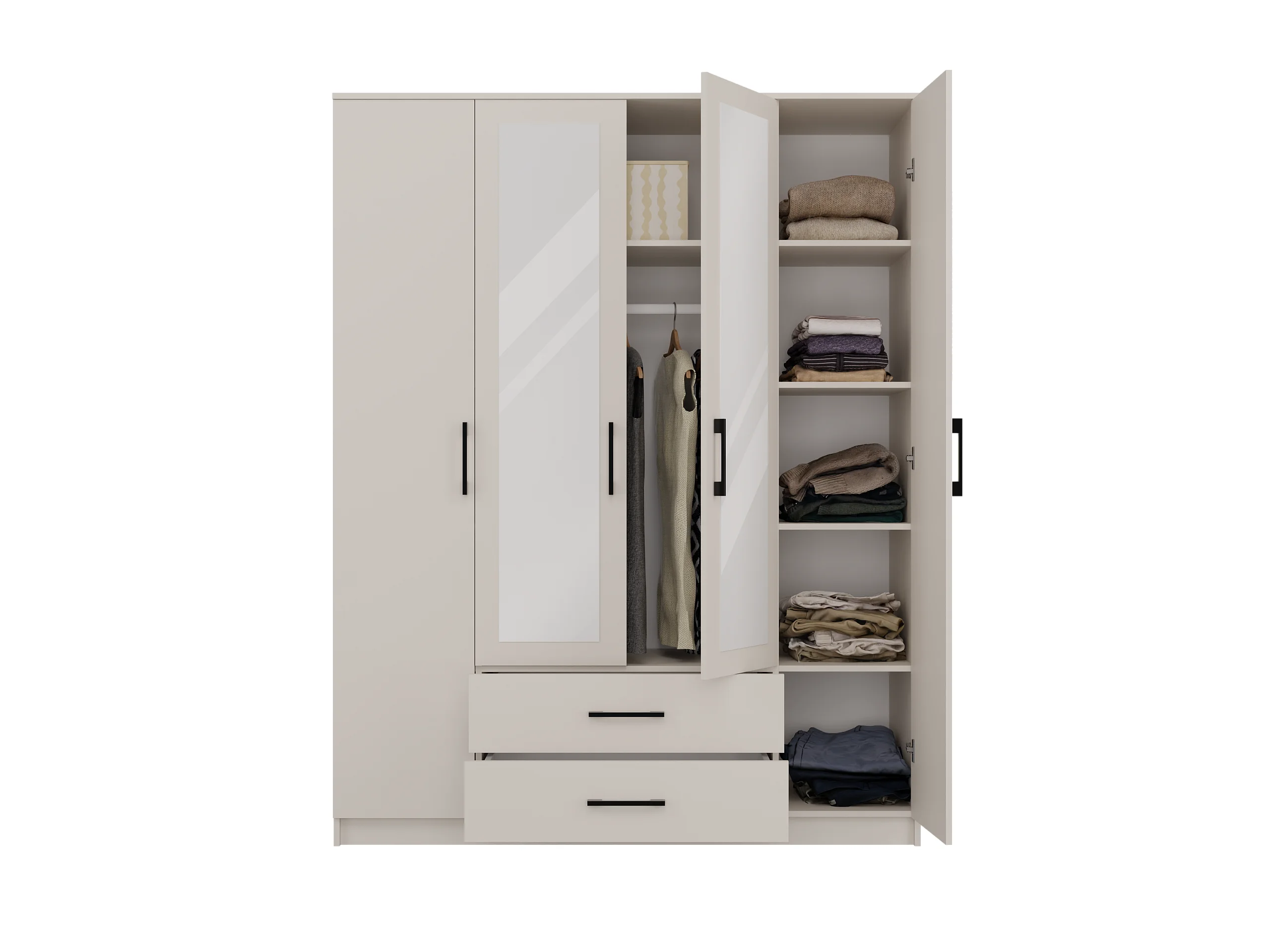 Szafa ROMANA 160 | Kaszmir | 160x54x205 cm | Lustro 2 Szuflady 4 Drzwi