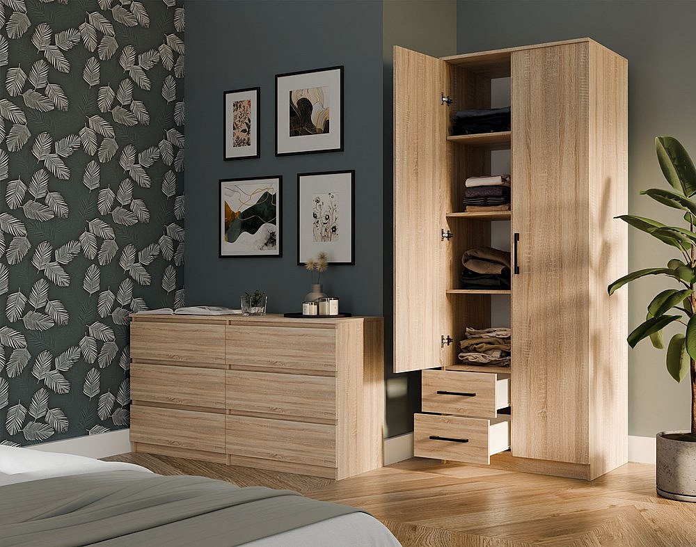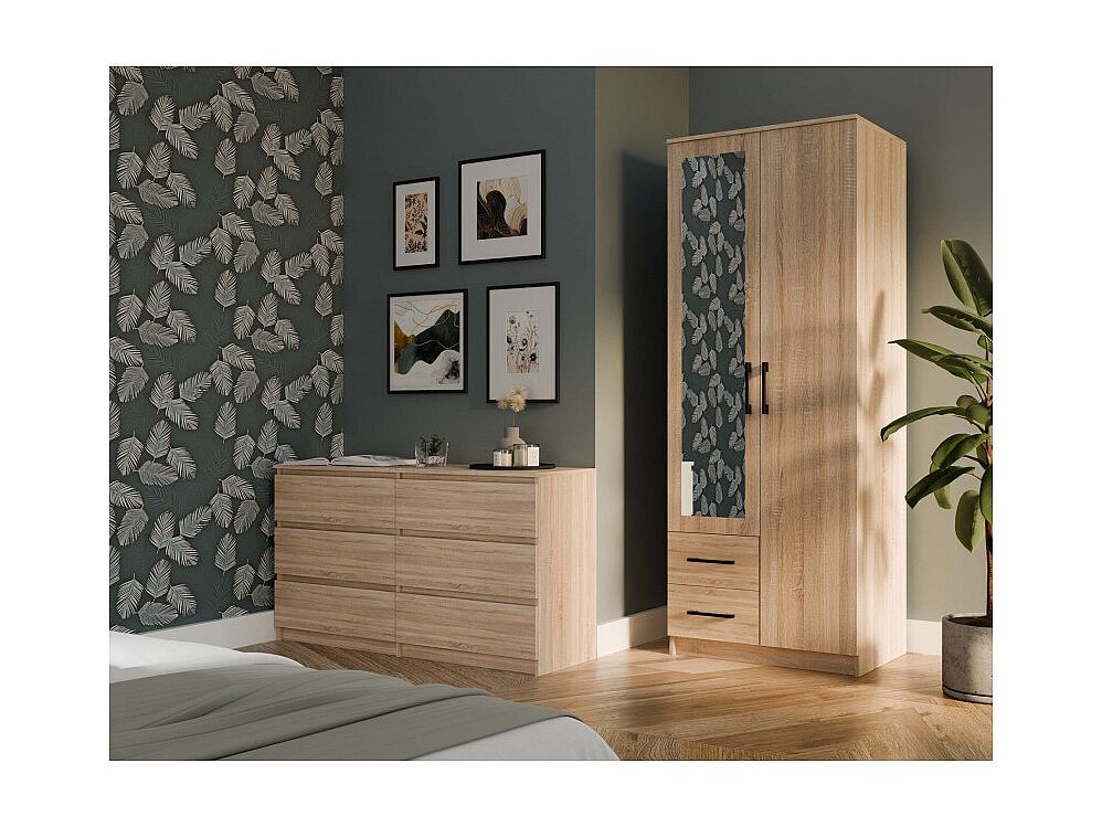 Szafa Romana 80 | Dąb Sonoma | 80x52x205 cm | Szafa z Lustrem