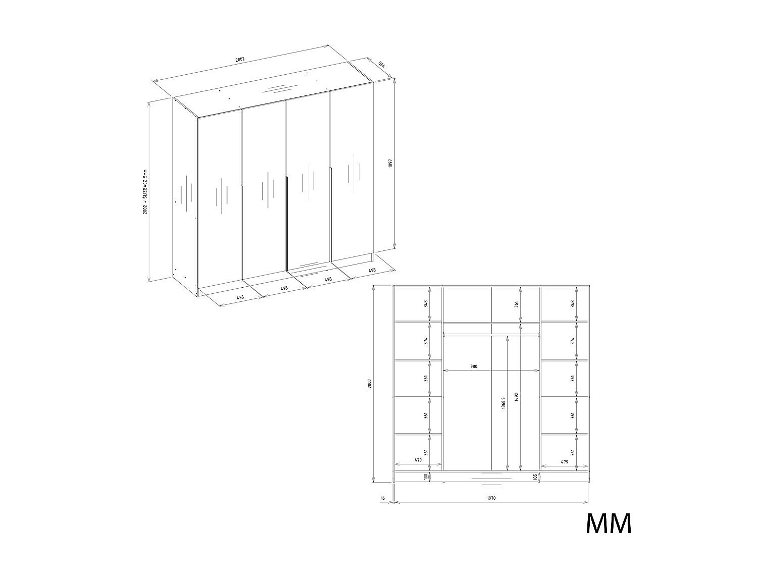 Szafa SENSO 4D | Kaszmir | 200x56,5x200 cm | 4 Drzwi Złote Uchwyty