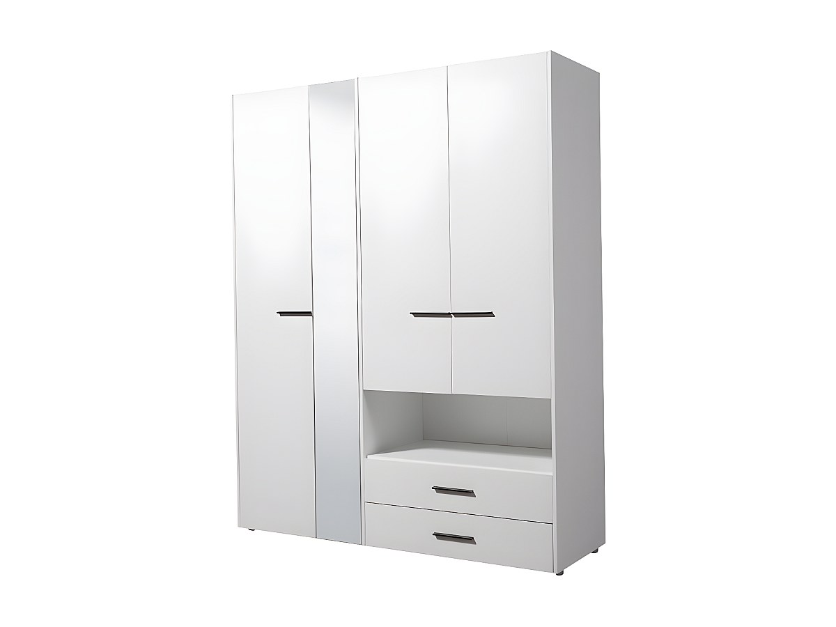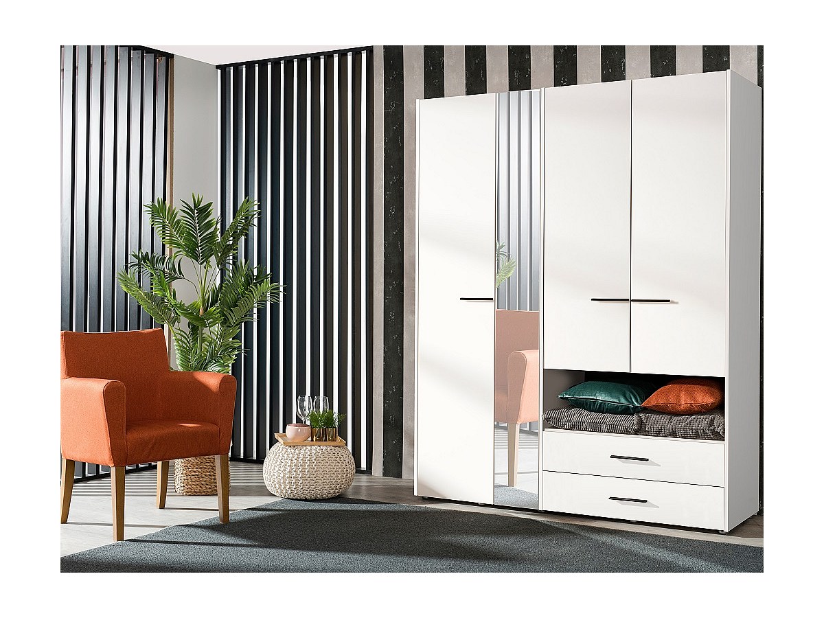 Szafa THELMA - 3 pary drzwi i 2 szuflady - Lustro - Dł.161 cm - Kolor biały