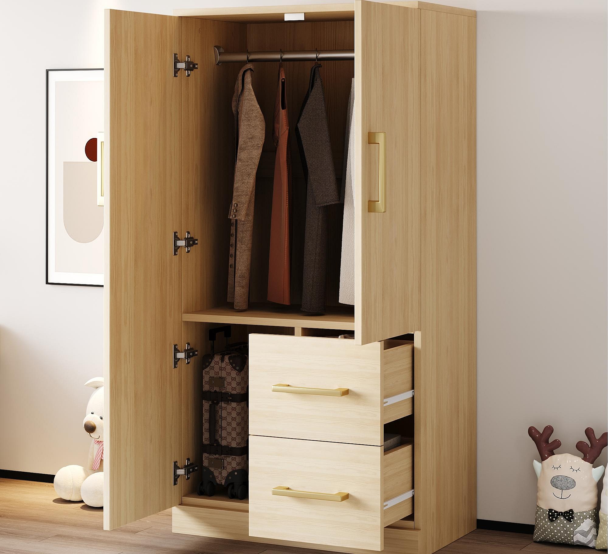 Szafa ubraniowa 70x40x135 cm - 2 drzwi - 2 szuflady - z przegrodami przechowawczymi - naturalny