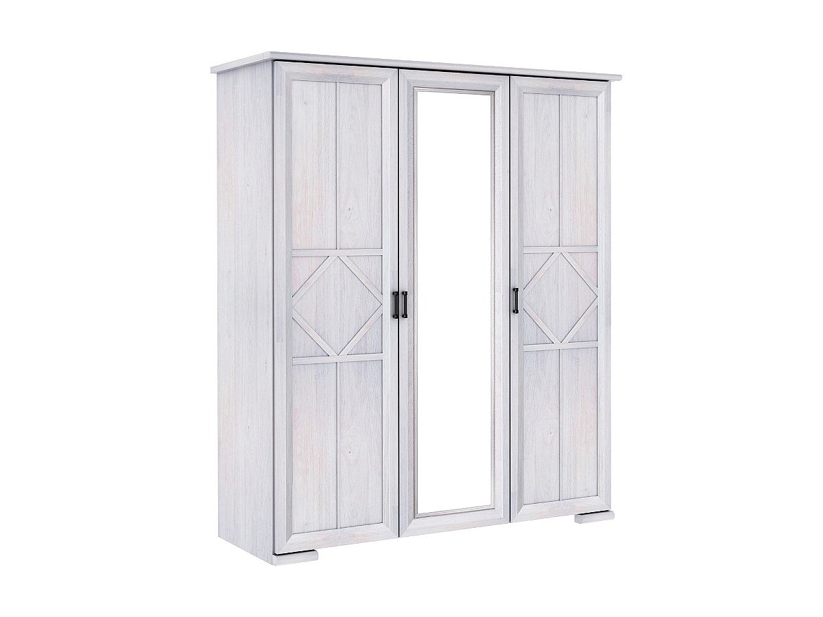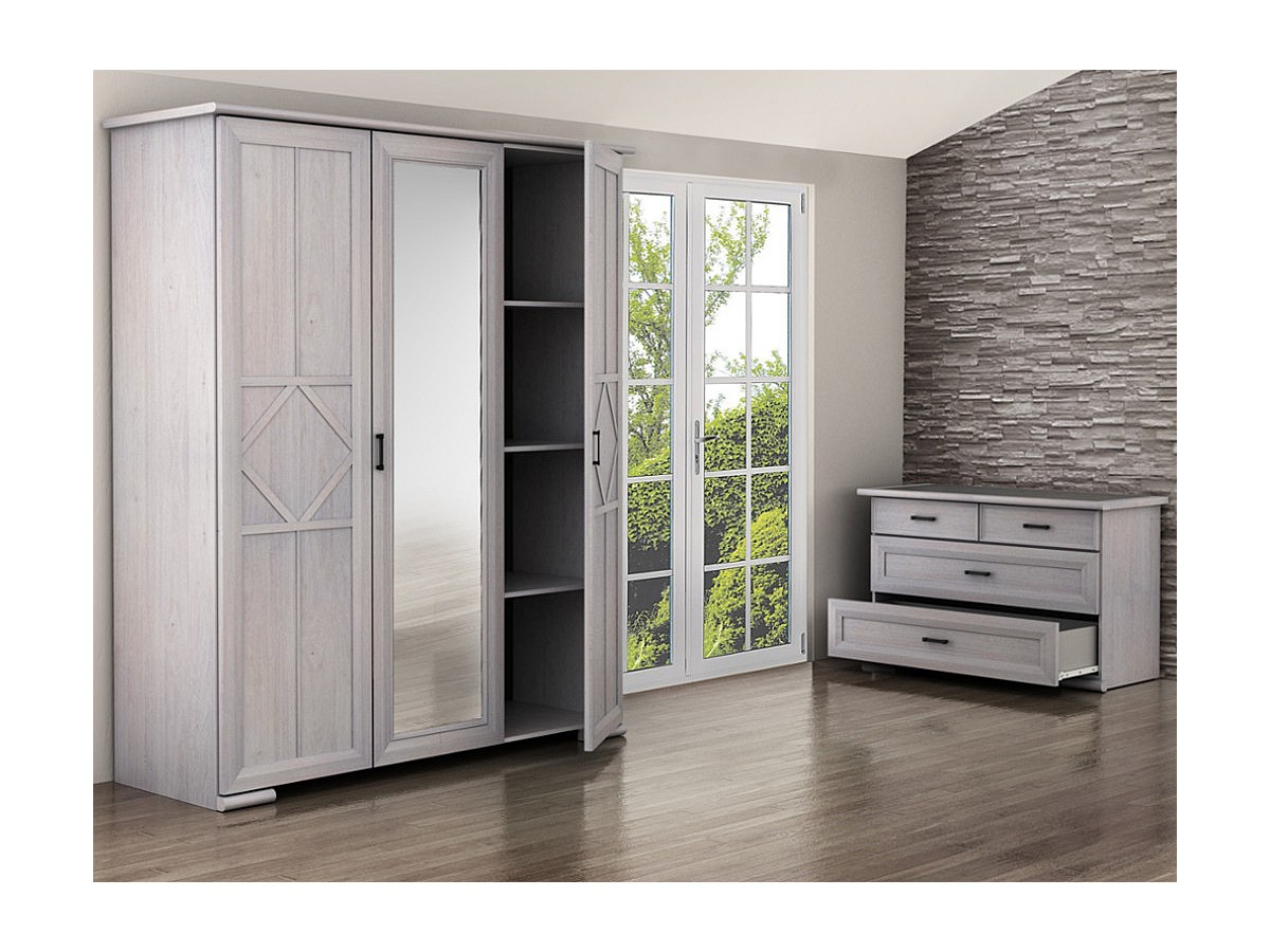 Szafa z lustrem MAELIS – długość 172,5 cm – 3-drzwiowa – wykończenie dębowe w kolorze białym
