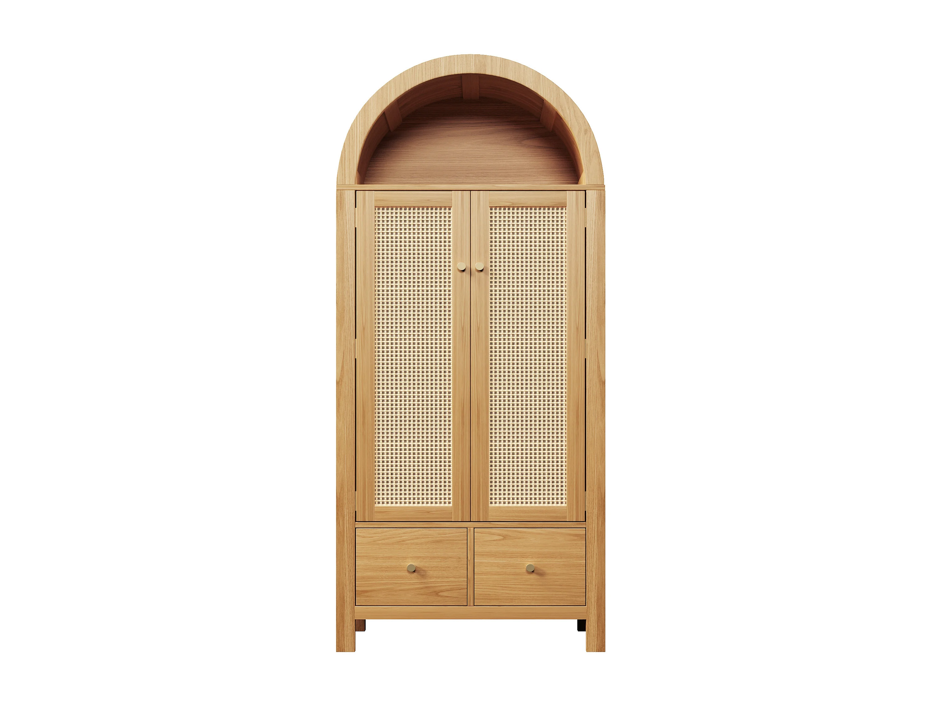 Szafa z plecionego rattanu - 181 x 78 x 45 cm - styl rustykalny z wykończeniem dębowym - z półką + 2 drzwi + 2 szuflady - drewno - naturalne