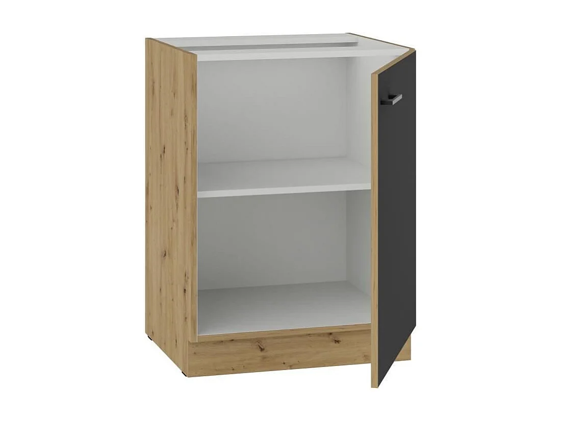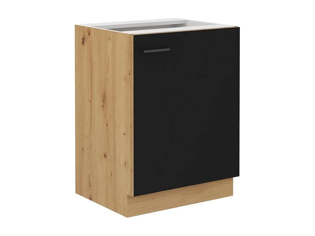 Szafka dolna MODENA 60 cm dąb rzemieślniczy i czarny mat, 1 drzwi skrzydłowe z LED i amortyzatorem, łatwy montaż