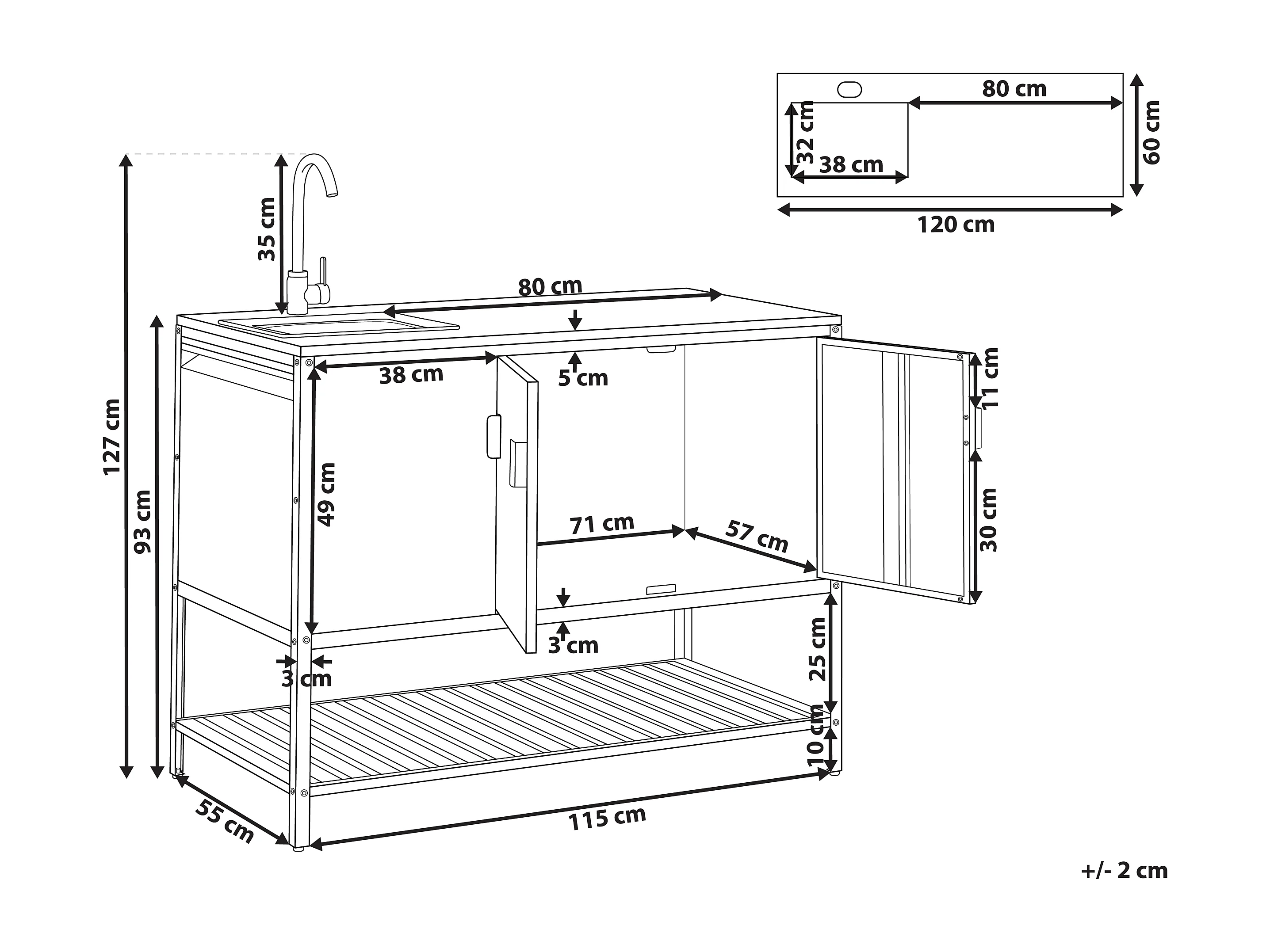 3 częściowa kuchnia ogrodowa ze zlewem IVREA Certyfikowane drewno akacjowe Brązowy
