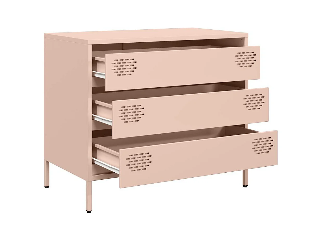 Różowy bufet z zimnowalcowanej stali z 3 szufladami i 3 półkami dla optymalnego przechowywania