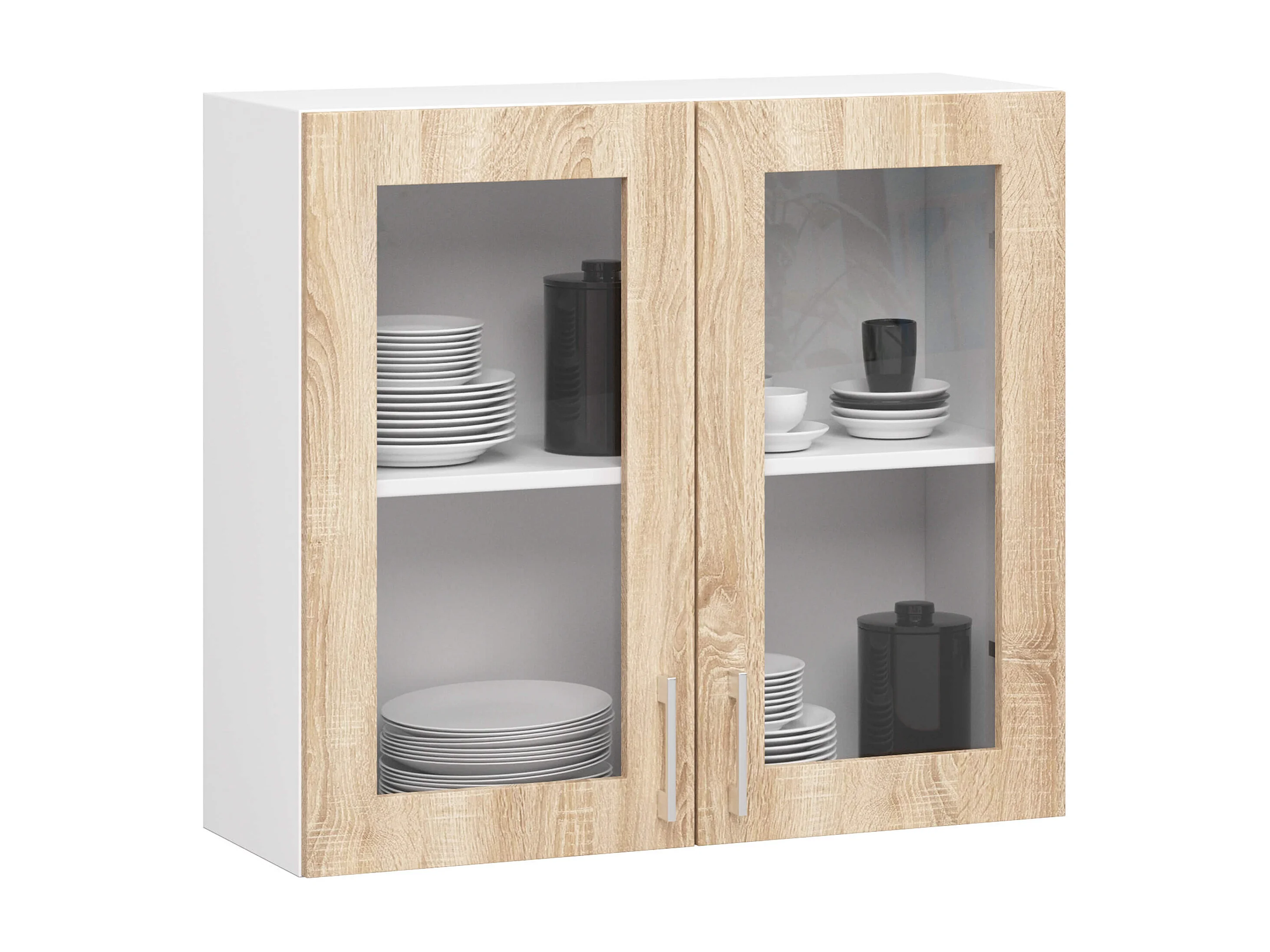 Szafka kuchenna wisząca witryna AKORD LIMA W80 D2 H720 Biała 80 cm 2 drzwi kolor Dąb Sonoma mat 2 półki 80x30,5x72 cm
