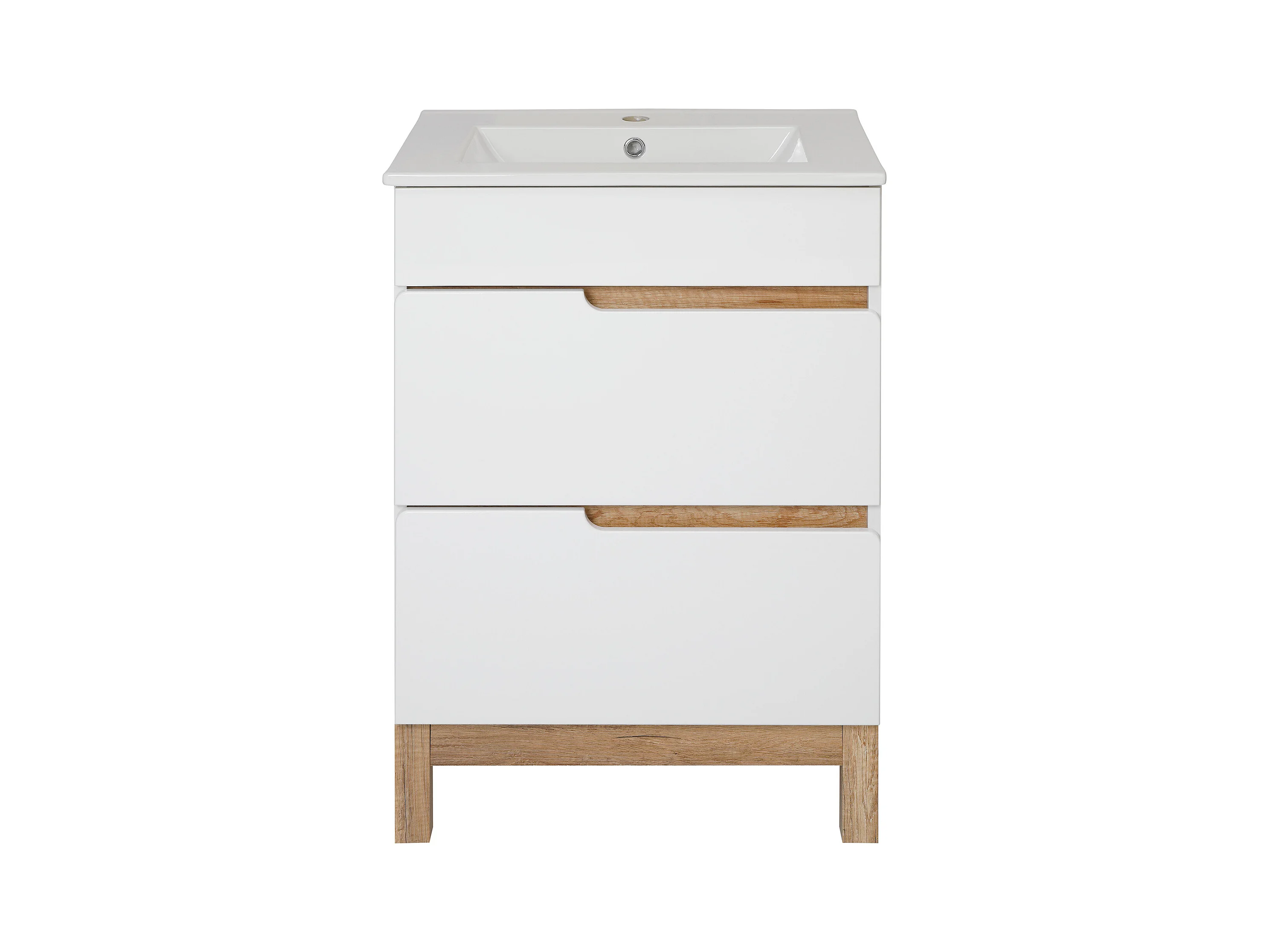 Szafka Łazienkowa pod Umywalkę 60cm 2 Szuflady Biały Mat Wood