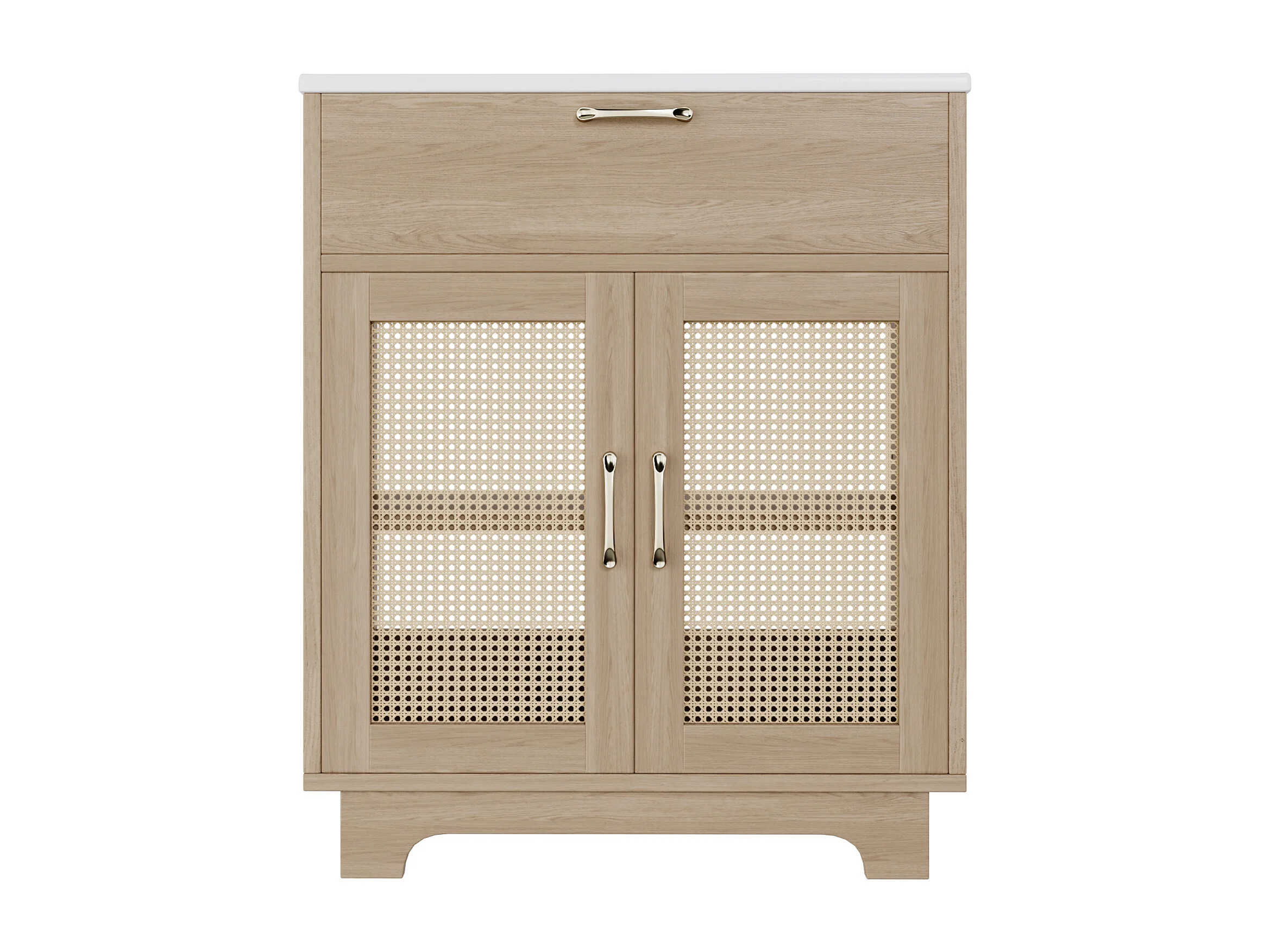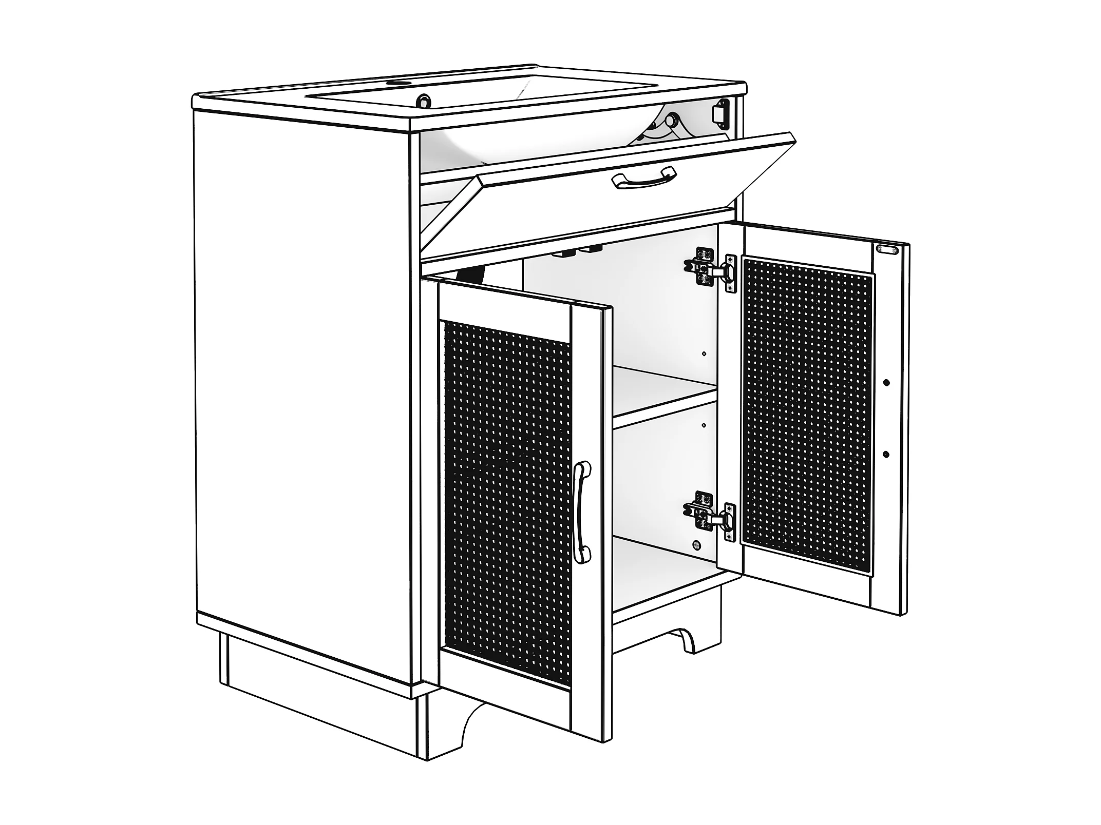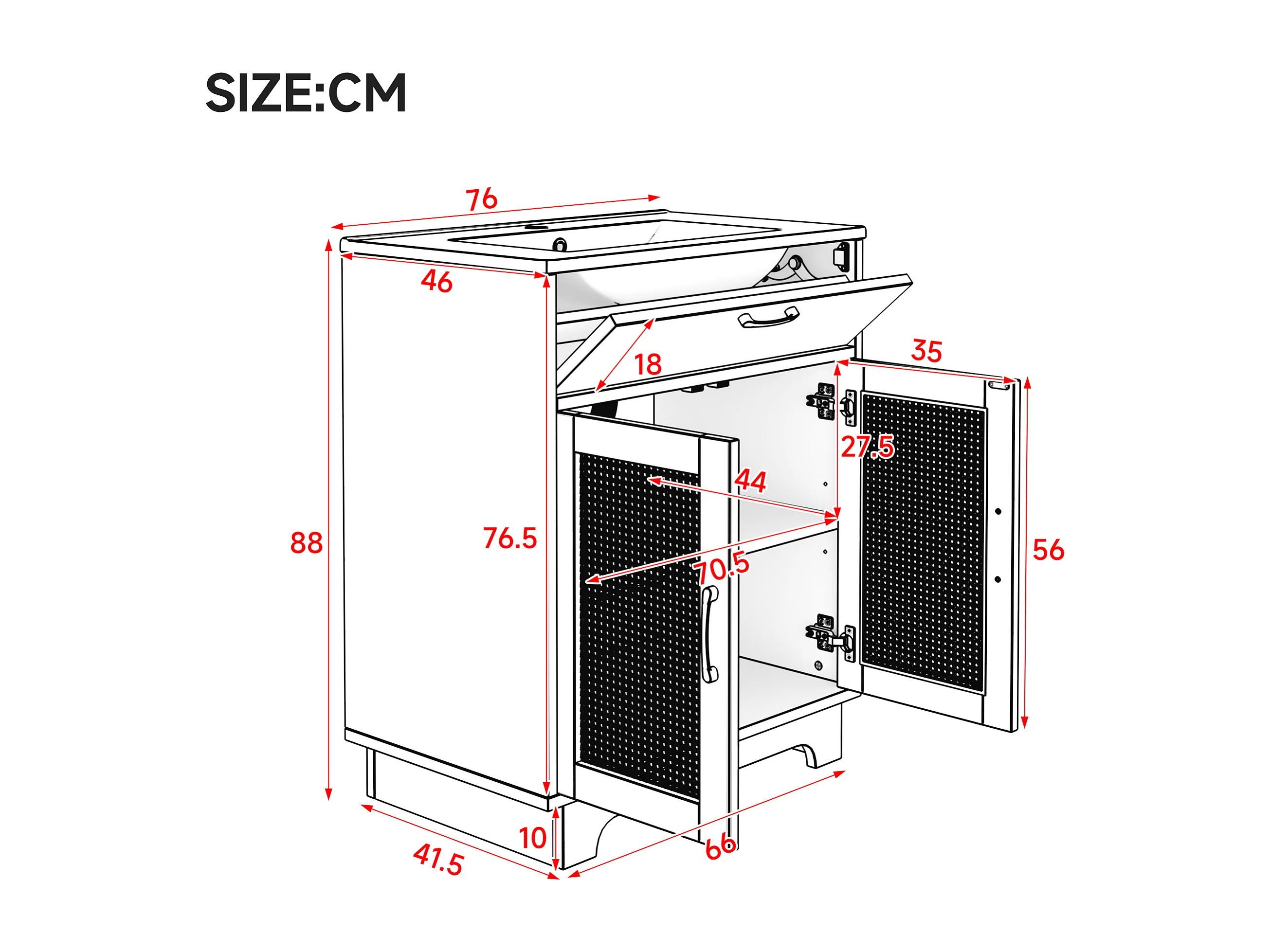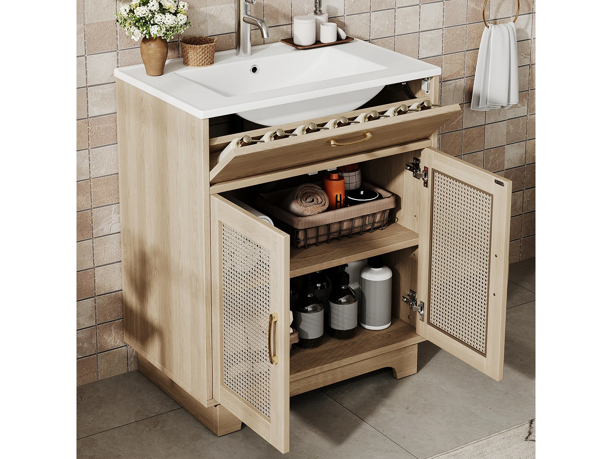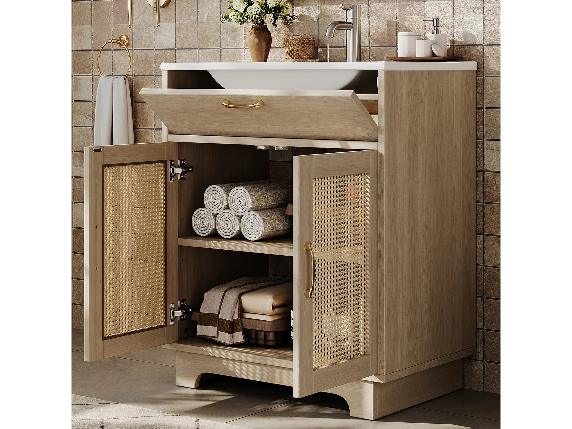 Szafka łazienkowa pod umywalkę - 76 x 46 x 88 cm - wykończenie naturalne - z 2 drzwiami + podnoszonymi szufladami + umywalką - MDF - naturalne