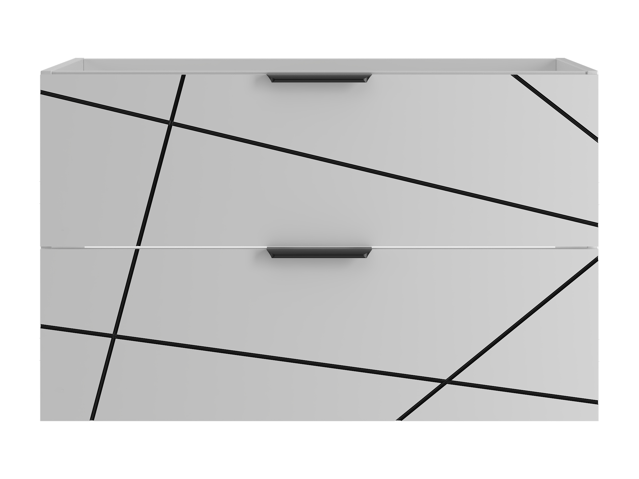 Fronty mebli Wood, wykonane z wysokiej jakości płyty MDF, wyróżniają się subtelnymi frezowaniami, które nadają kolekcji wyjątkowego charakteru. Detal ten, w połączeniu z metalowymi czarnymi uchwytami, podkreśla nowoczesny styl i dodaje meblom wyrazistości.