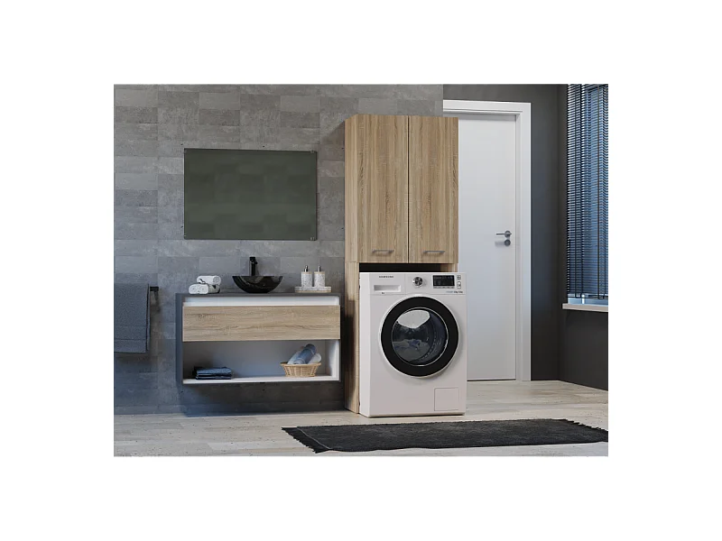 Szafka pod pralkę, dąb sonoma, biały mat, 31 x 64 x 180 cm