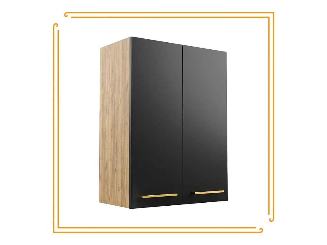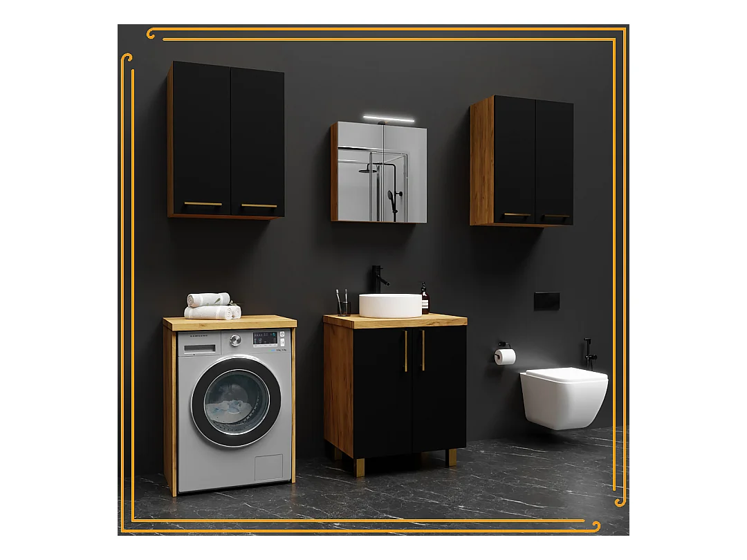 Szafka Łazienkowa Wisząca 60 cm Nad Umywalkę Pralkę Półki Dąb Craft Czarna
