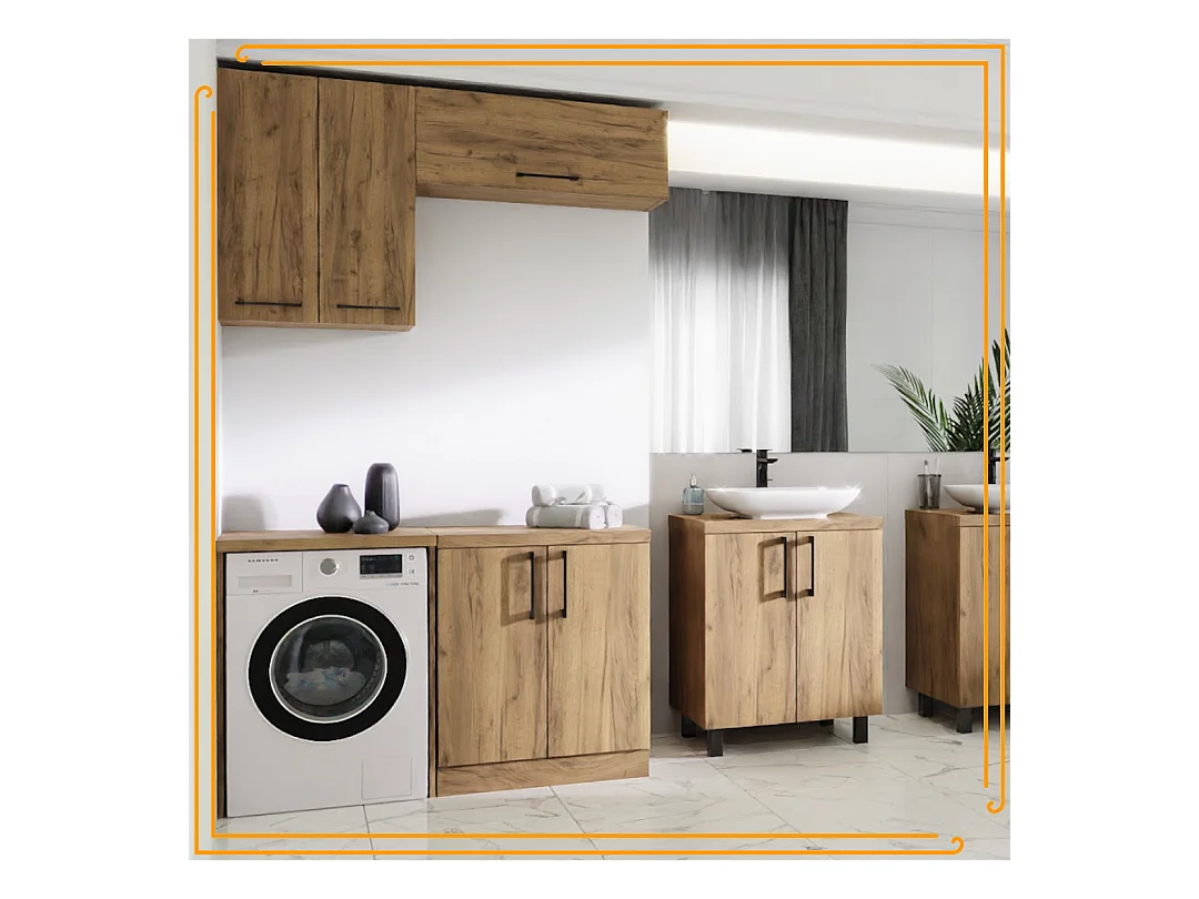 Meble łazienkowe z kosz na pranie i 3 szufladami BZR97-SN