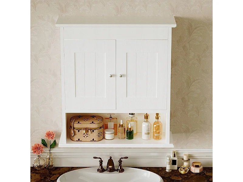 SZAFKA ŁAZIENKOWA WISZĄCA BIAŁA 2-DRZWIOWA SKANDYNAWSKI ŚCIENNA PÓŁKI LOFT