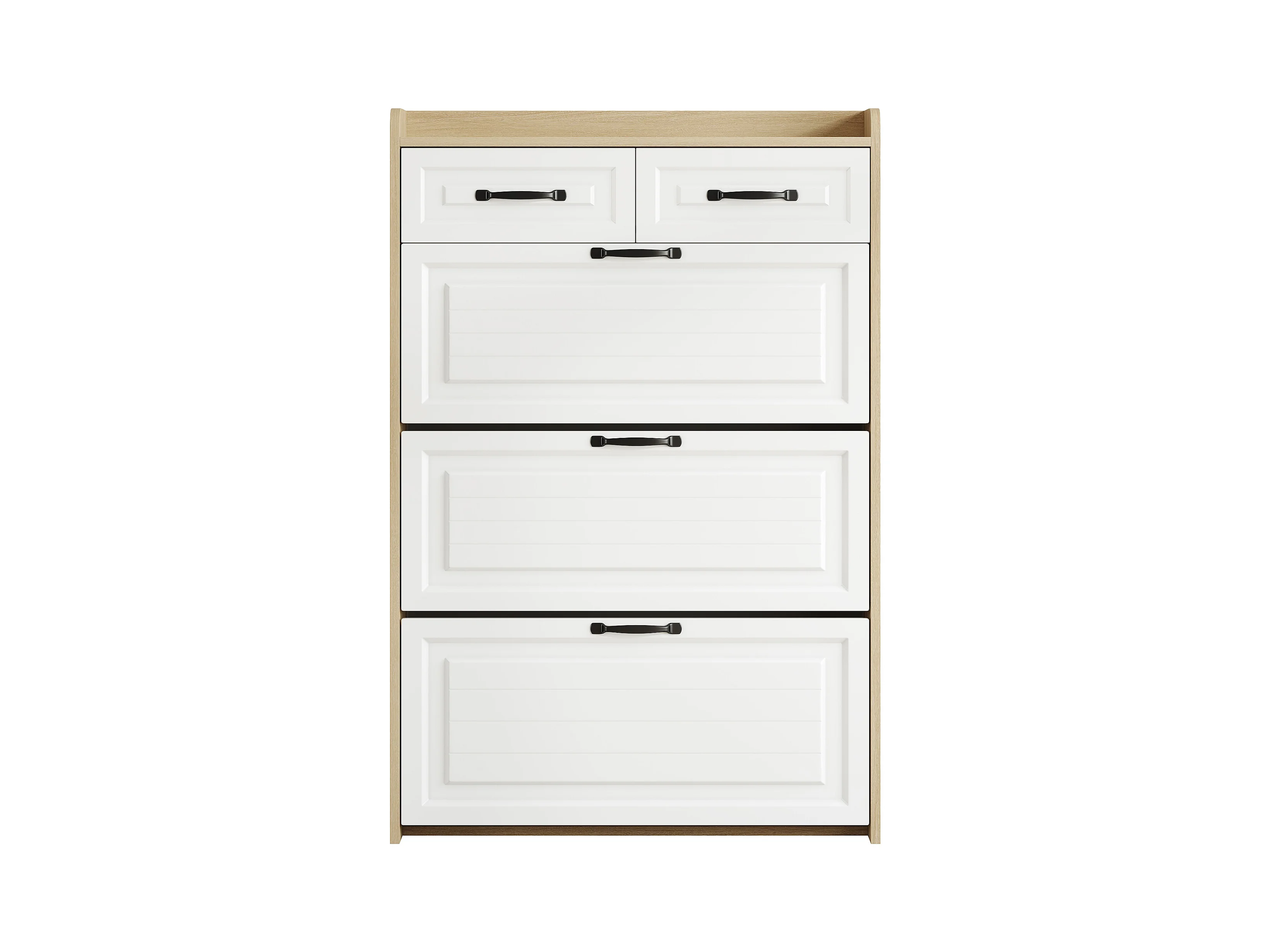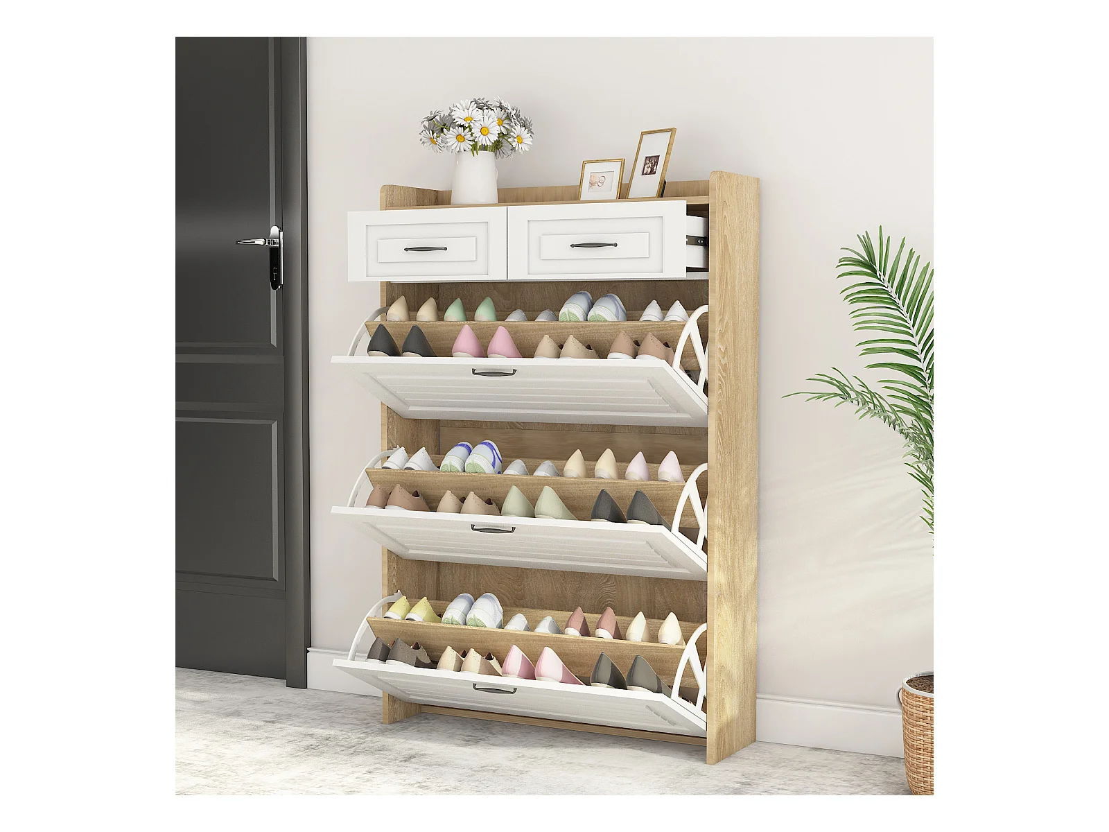 Szafka na buty 80x23,5x125cm - z trzema dużymi klapami - z 2 szufladami - biała + naturalna