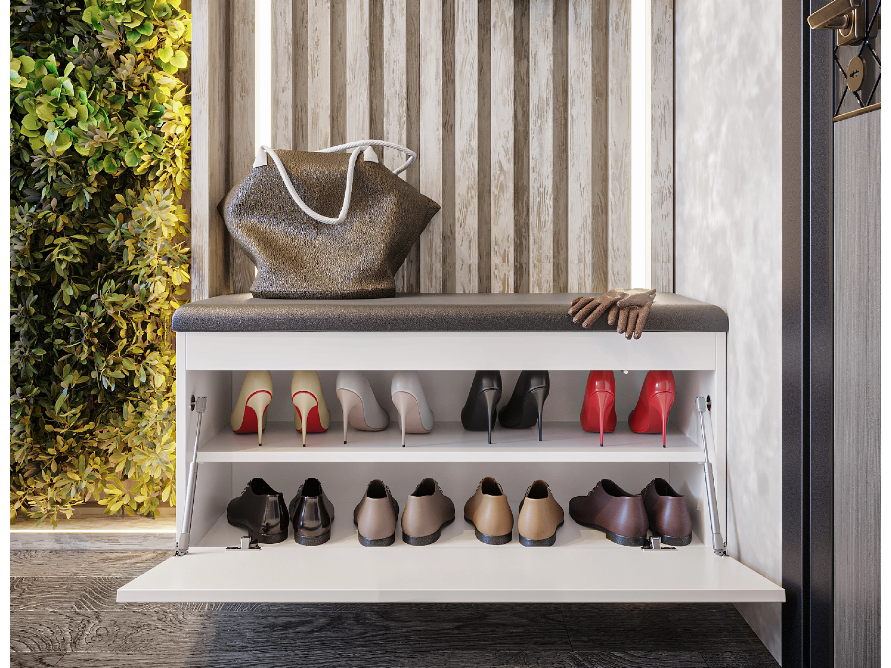 Szafka na buty BARI 100 cm – Ławka do przedpokoju z siedziskiem z ekologicznej skóry, na 8–10 par
