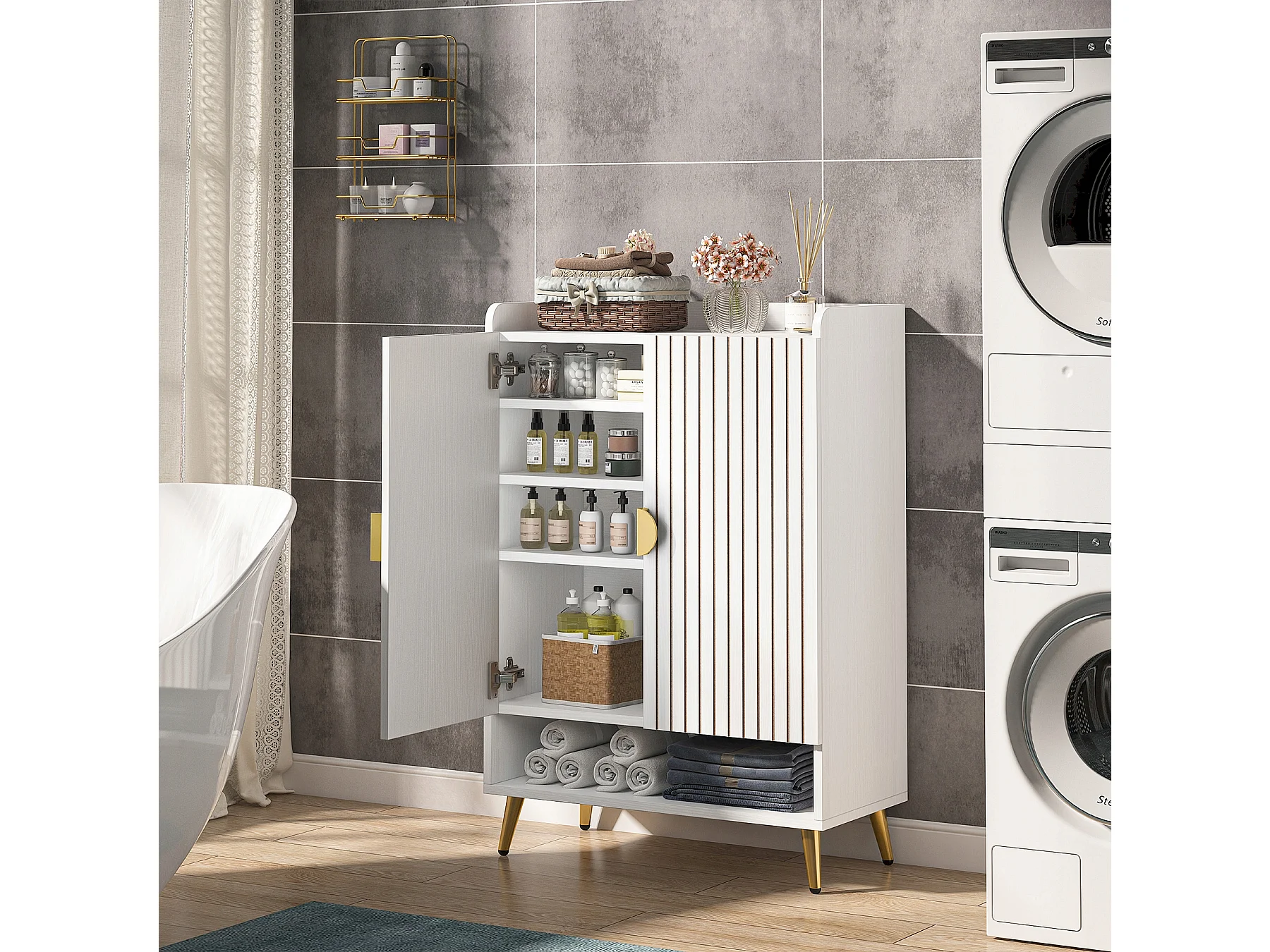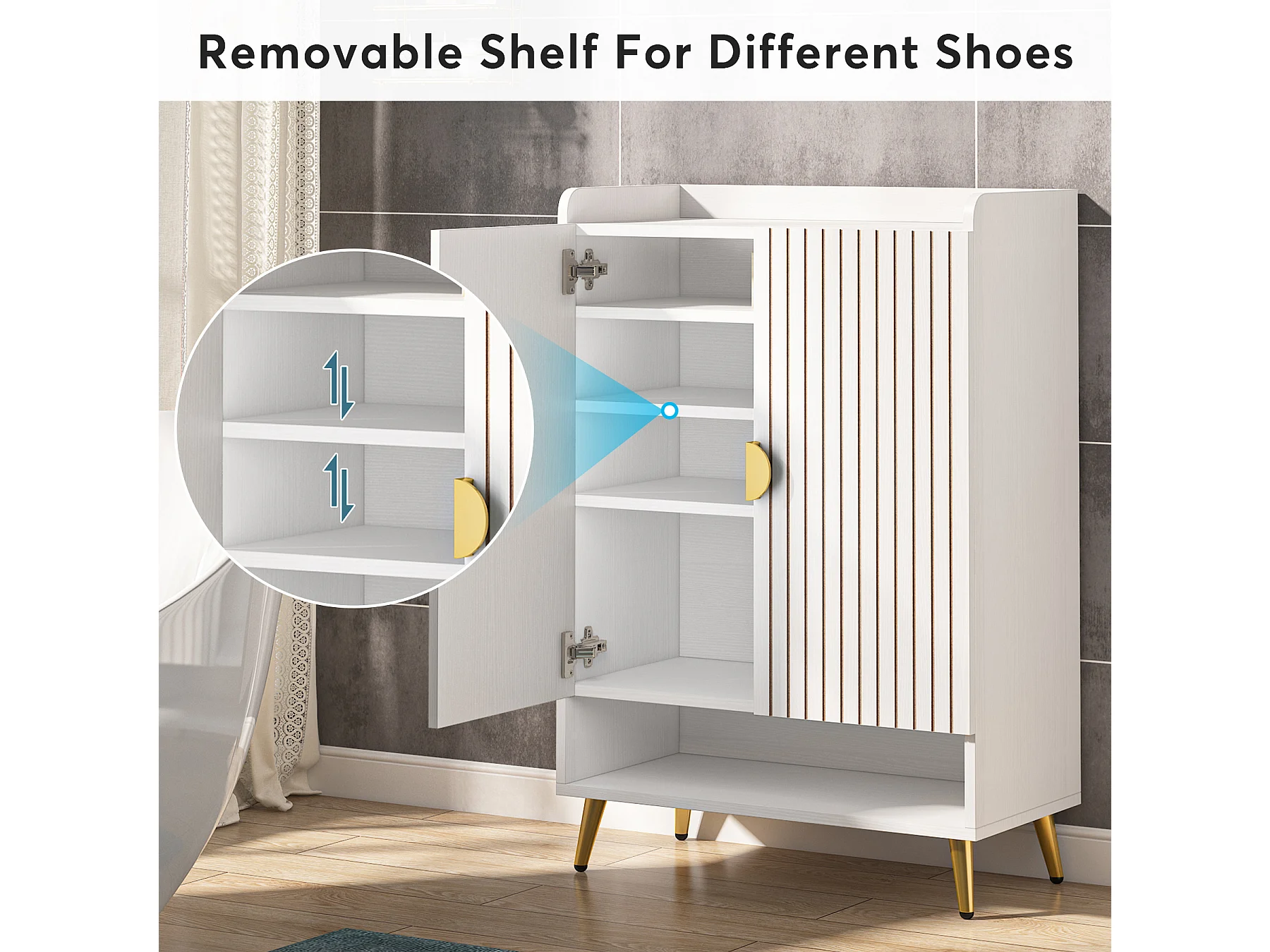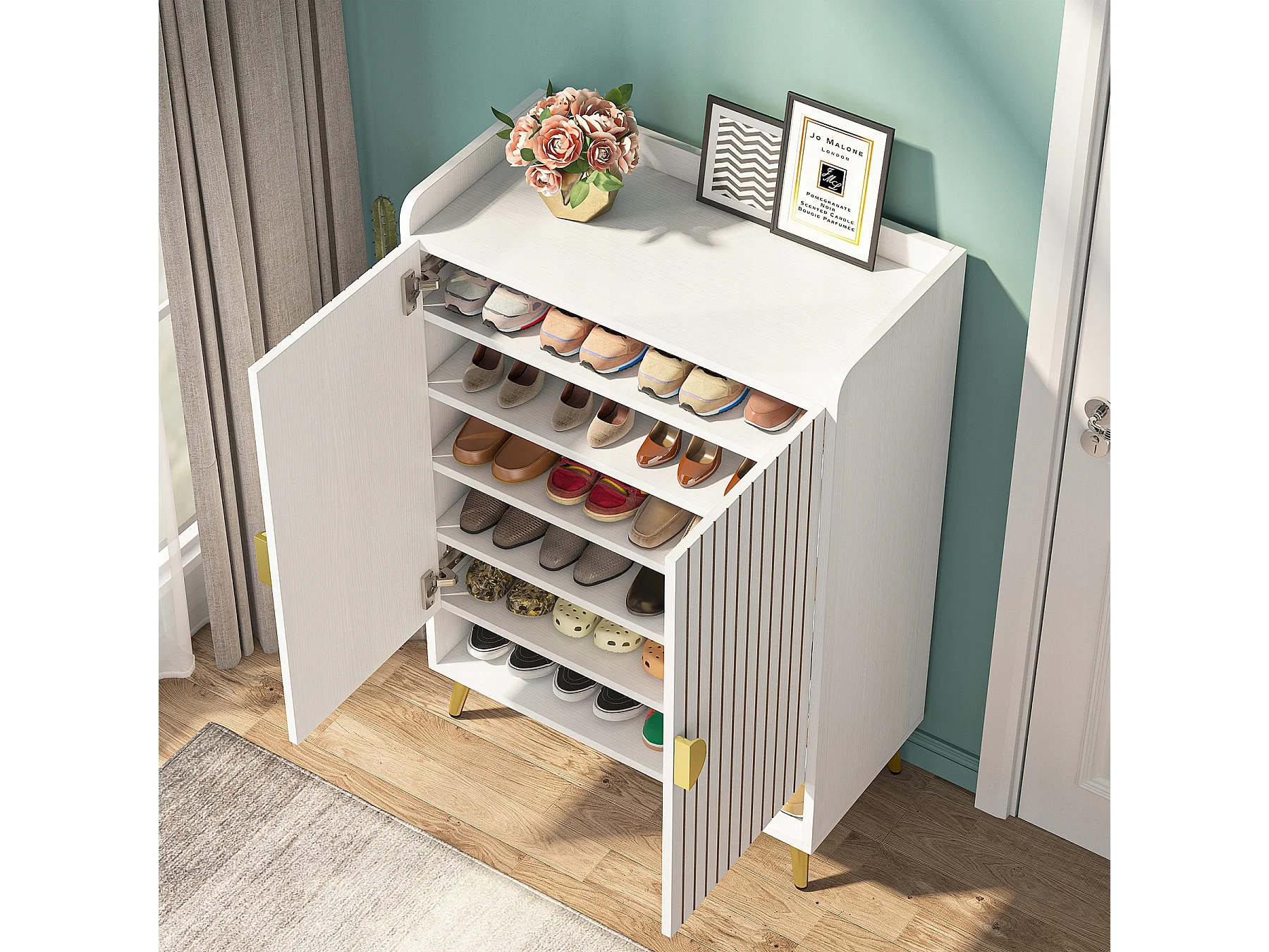 Szafka na buty, 25 par szafek na buty z drzwiami, duża szafka z półkami i złotą metalową ramą