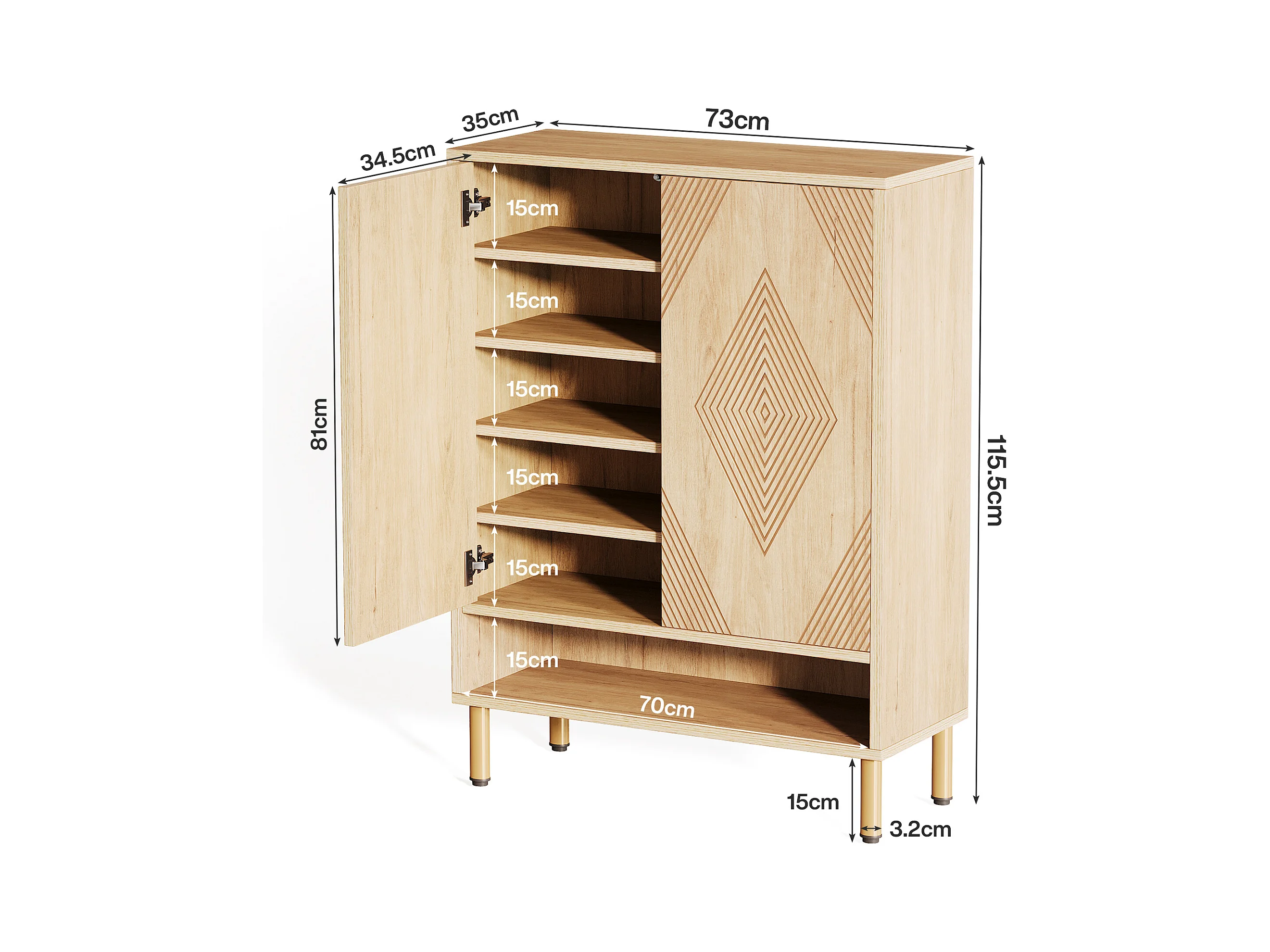 Szafka na buty z 2 drzwiami, 73 x 35 x 115 cm, 6 półek na 25 par butów