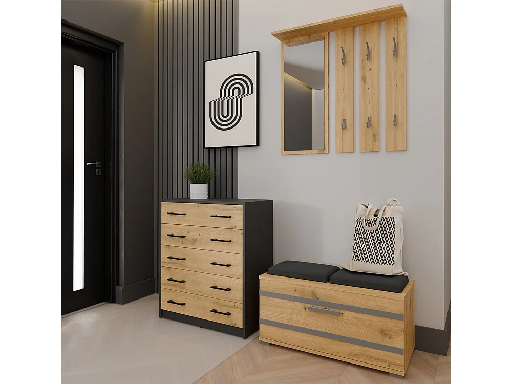 Szafka na Obuwie ALEX | Antracyt/Dąb Artisan | 35x74x84.5 cm | Nowoczesna