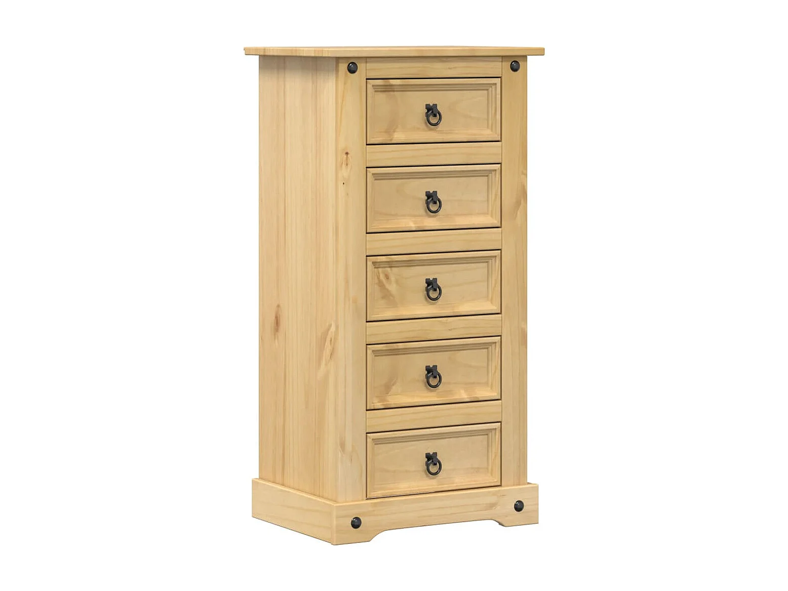 Szafka nocna Corona z litego sosnowego drewna 5 szuflad 53x39x103 cm wykończenie wosk miodowy