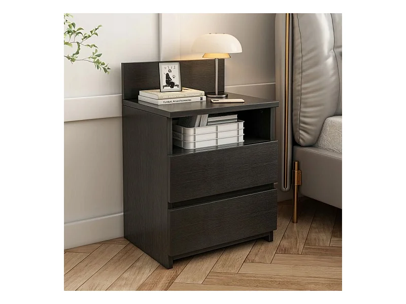 Szafka nocna z 2 szufladami - Czarny - LUREO
