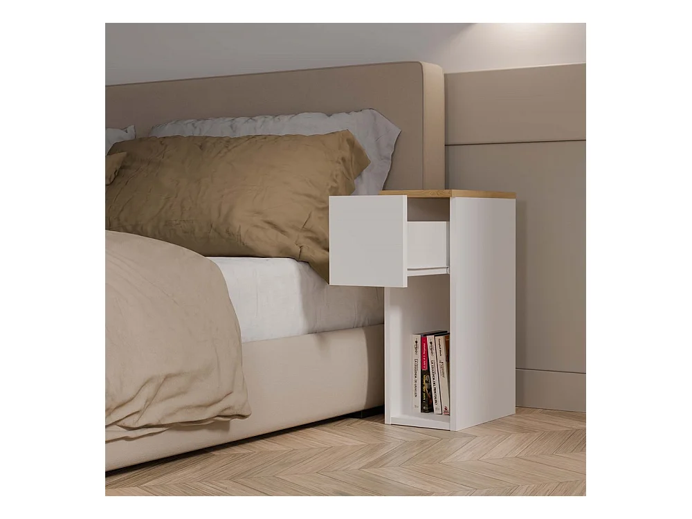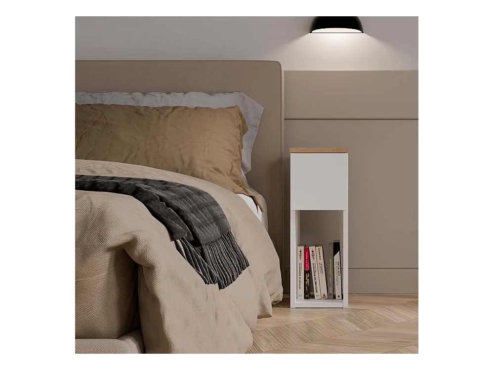 Szafka nocna GALAX 20/1S | Biała/ Dąb Artisan | 20x30x55 cm | Nowoczesny stolik z szufladą