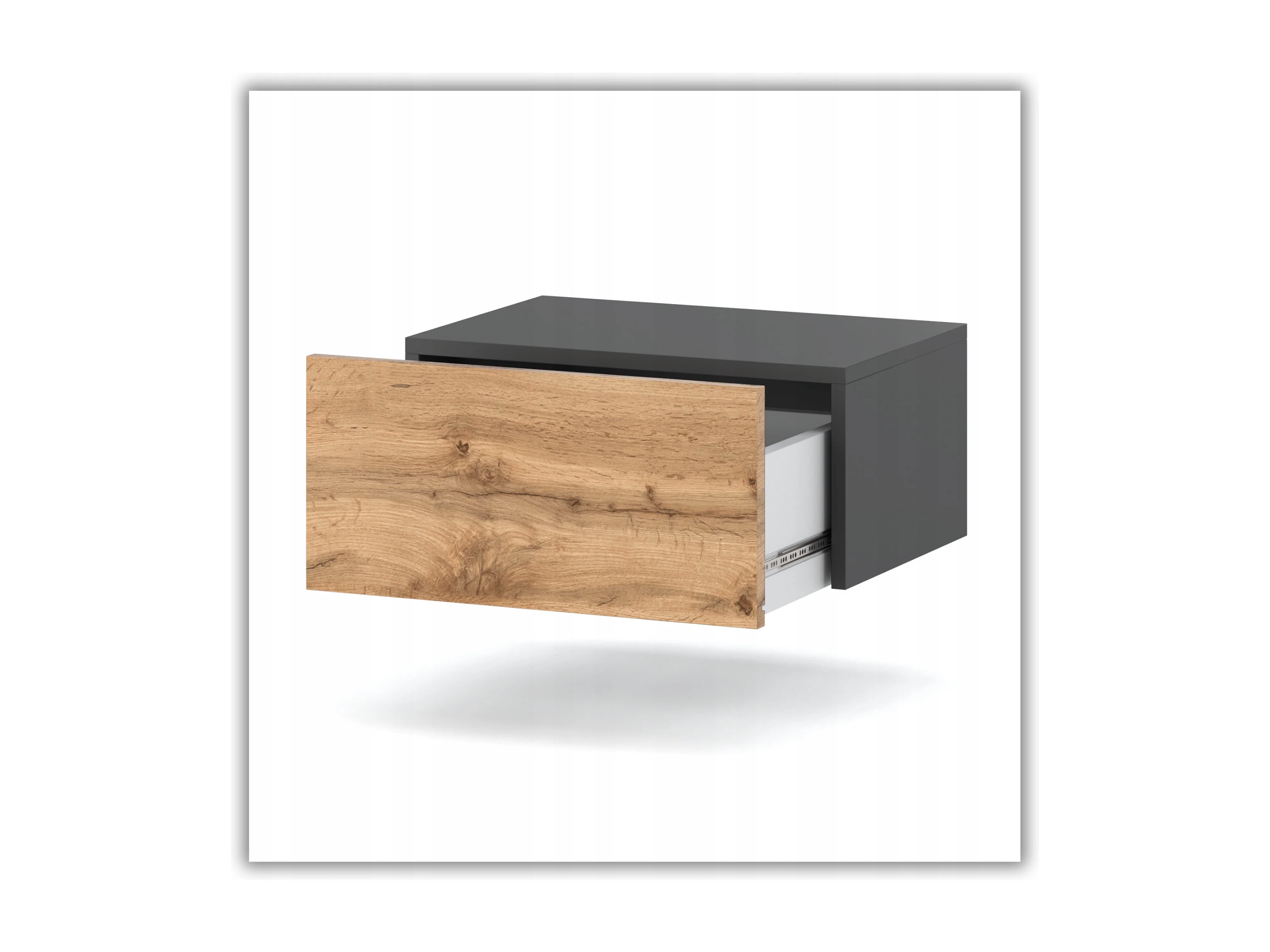 Szafka Nocna Wisząca 1 Szuflada 45cm Stolik Nakastlik Szary Mat Dąb Wotan Do Sypialni