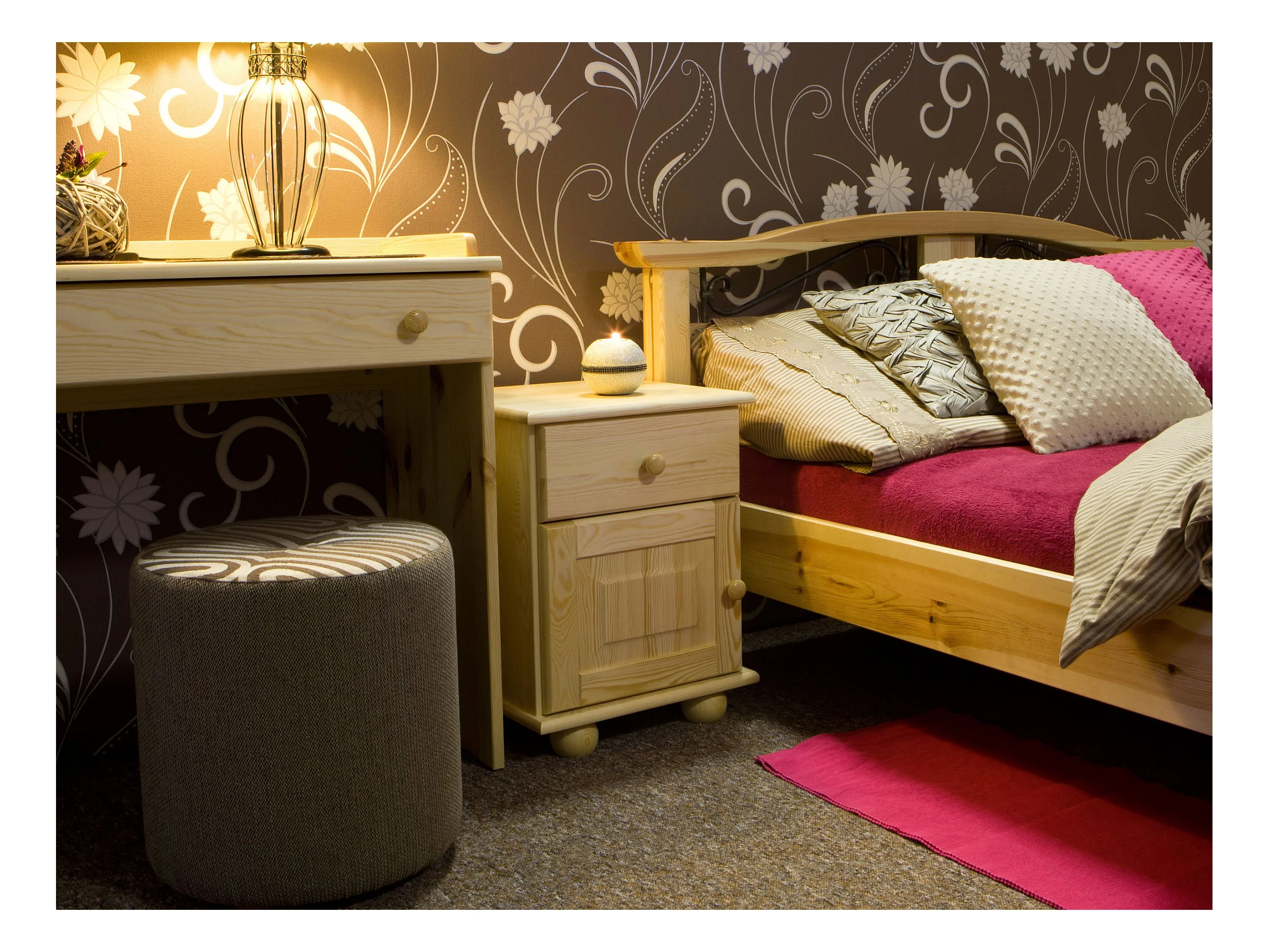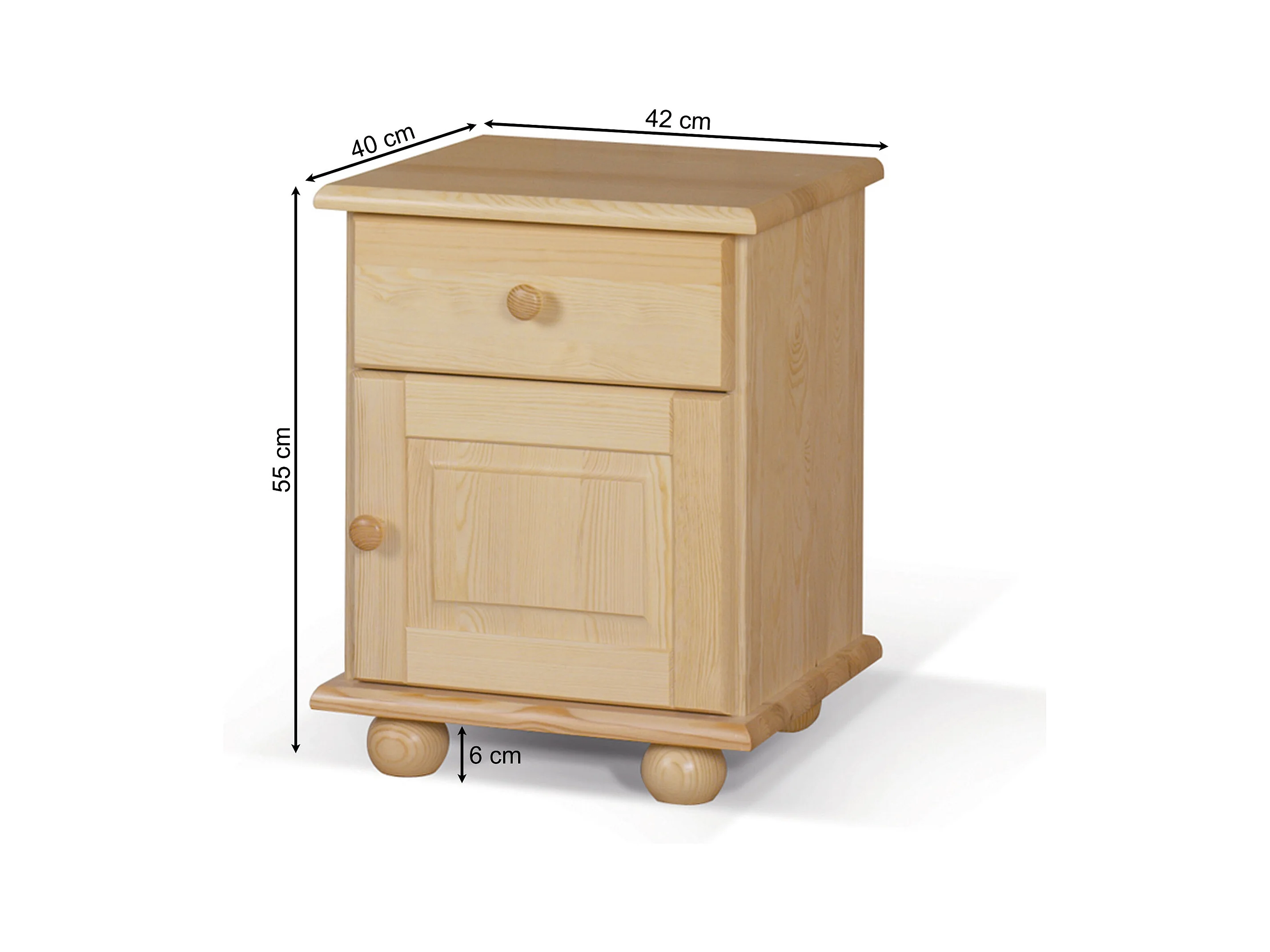 Szafka nocna z drewna litego, sosnowa z szufladą i drzwiczkami L OLIVER