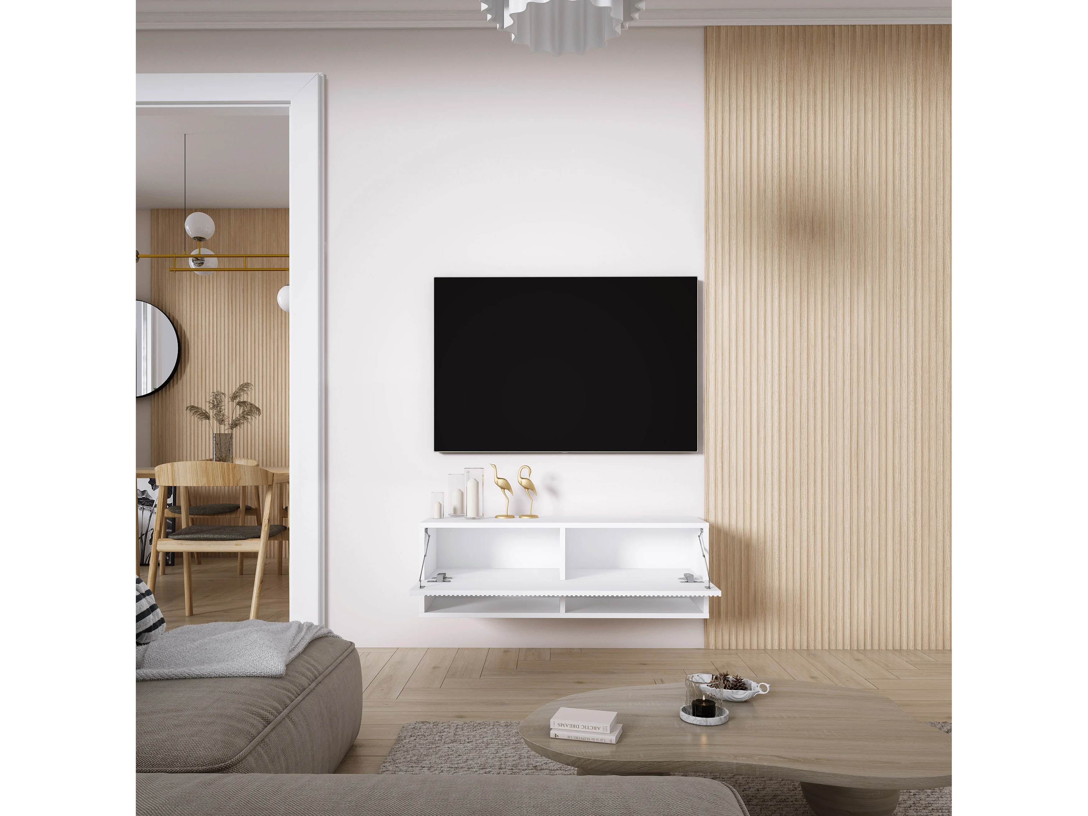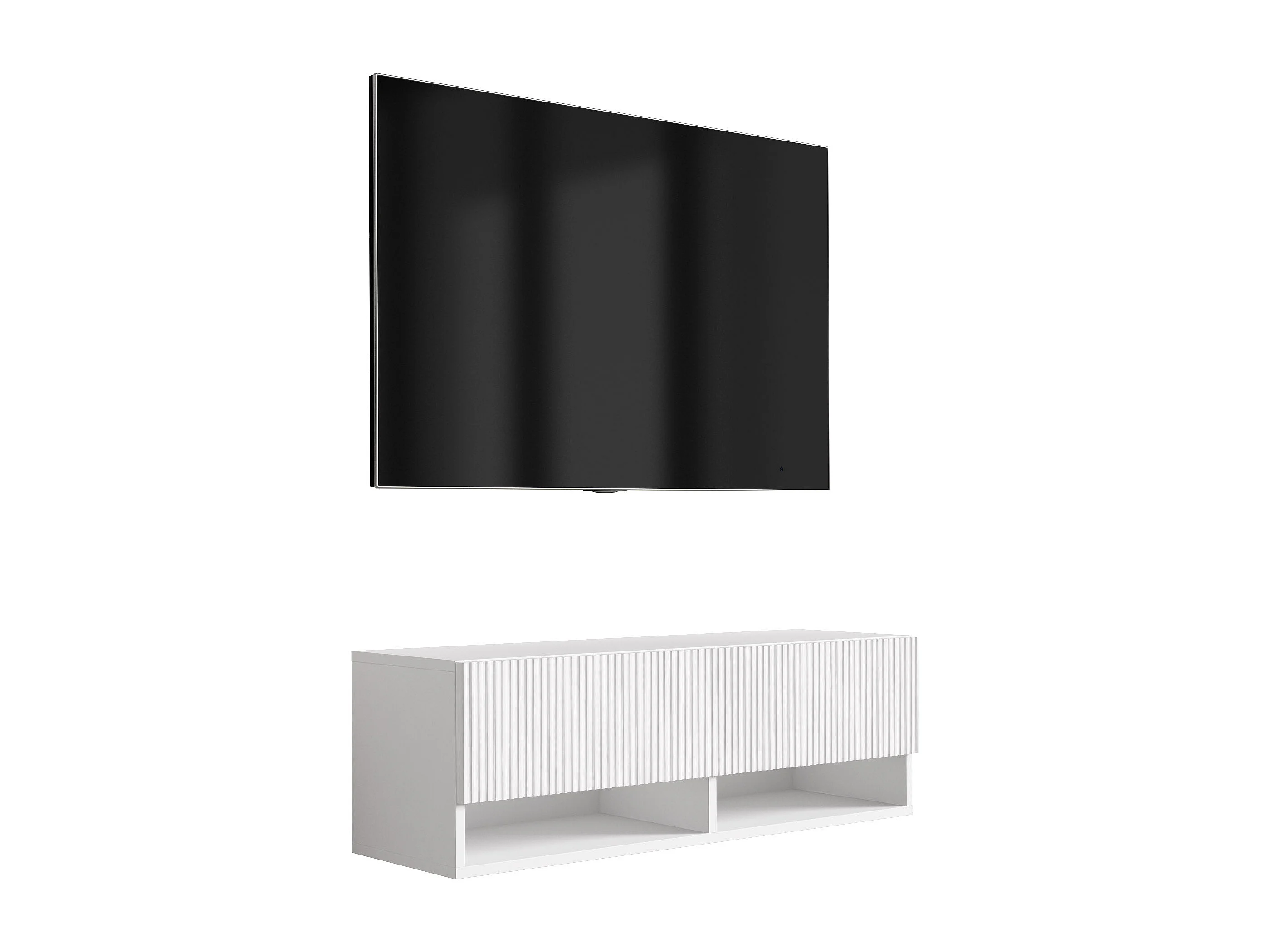 Szafka pod telewizor z ryflowanym frontem 100, Biały Mat, 100 × 32 × 33,6 cm
